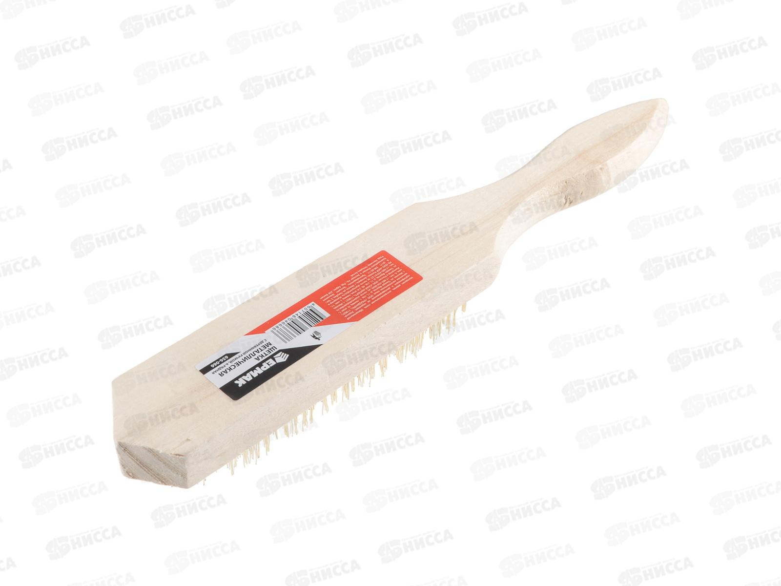 Щетка по металлу ЕРМАК с деревянной ручкой 6-ти рядная с металлической щетиной применяется для работ по металлическим поверхностям с целью зачистки от старых лакокрасочный покрытий, загрязнений, ржавчины, следов коррозии. Ручной инструмент также можно использовать для удаления заусенцев с торцов деталей и заготовок, зачистки сварочных швов и неровностей. Эргономичная деревянная рукоять имеет гладкую обработку, высокую прочность и надежно ложится в руку.