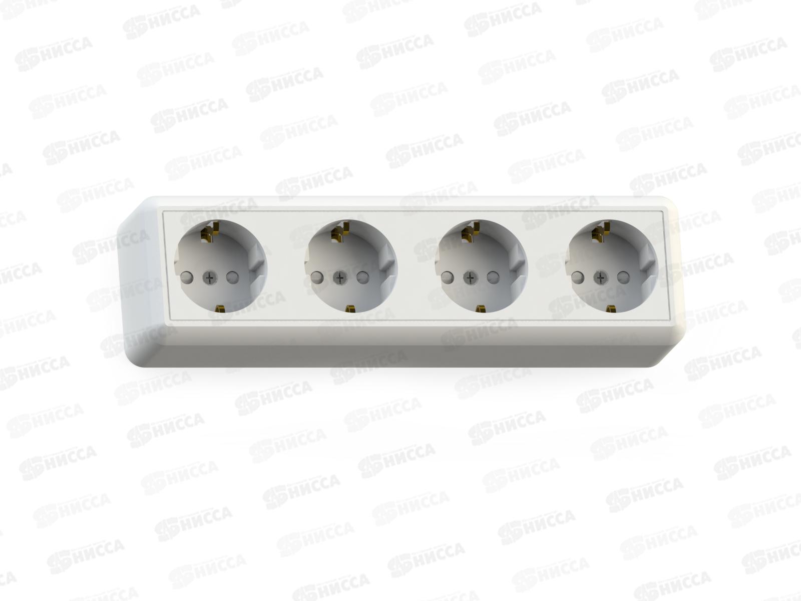 Розетка открытой установки 4-х местная РА16-403 Оптима с заземляющим контактом и защитными шторками 403 *20
