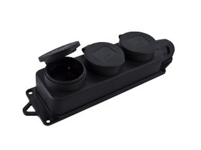 Розетка трехмест. TDM с заклушками каучук 2P+PE 16А 250В IP44, 0008
