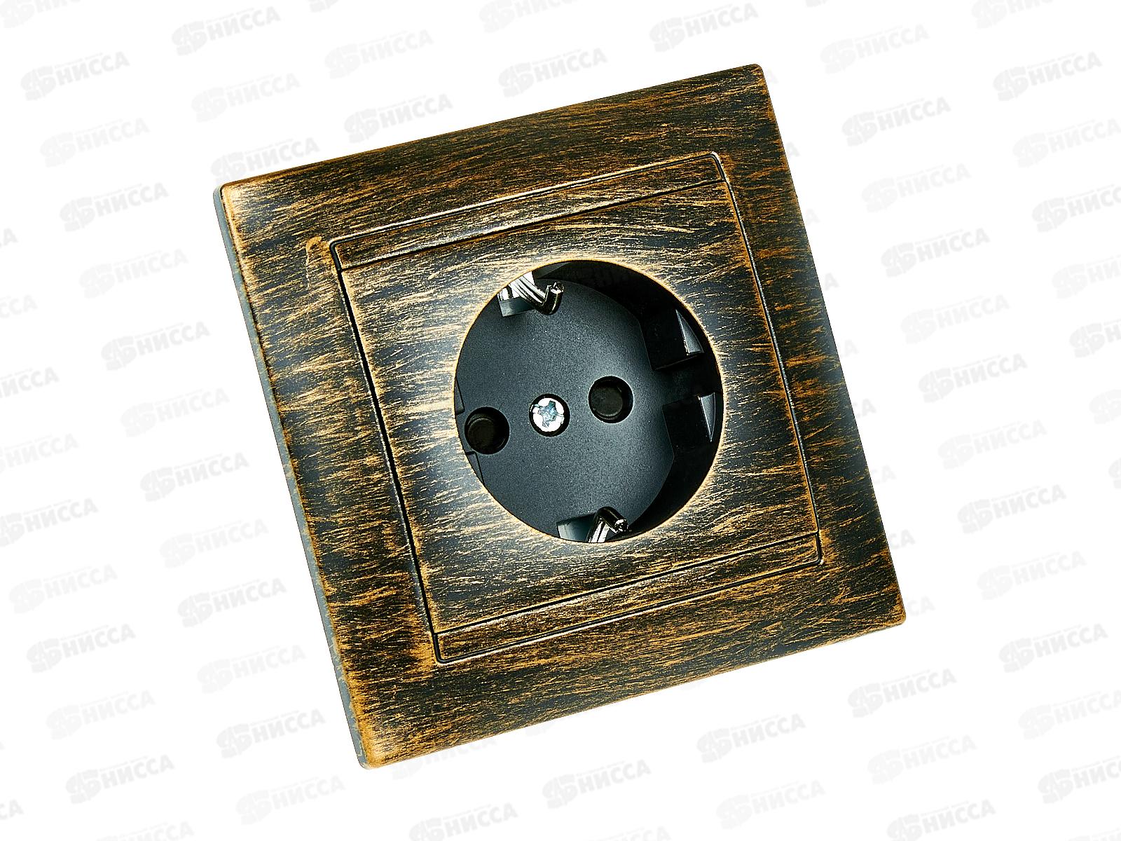 Розетка TDM 16А 250В с защитной шторкой старинная бронза "Лама", 0752