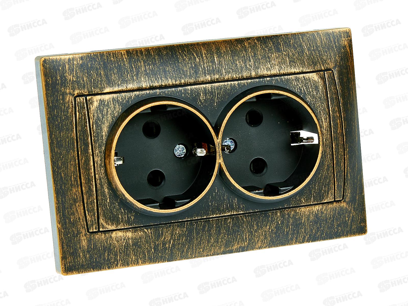 Розетка TDM двойная 16А 250В с защитной шторкой старинная бронза "Лама", 0754