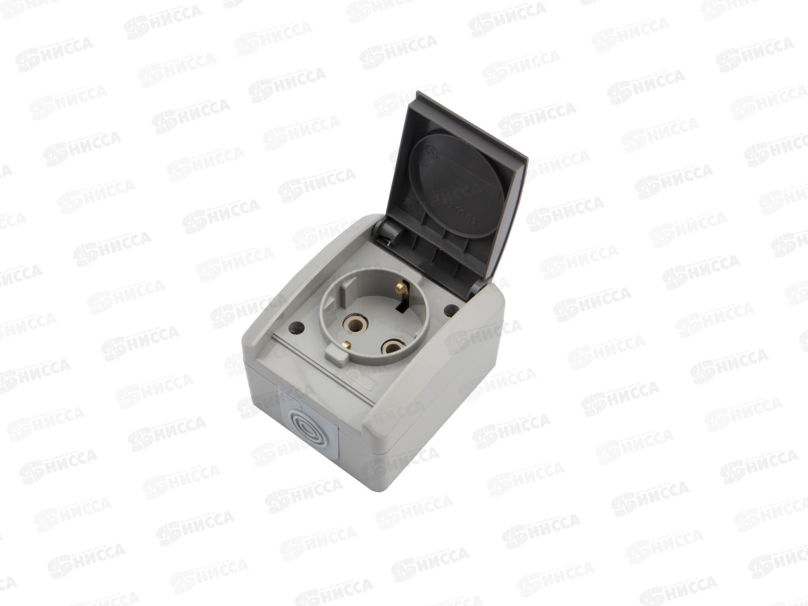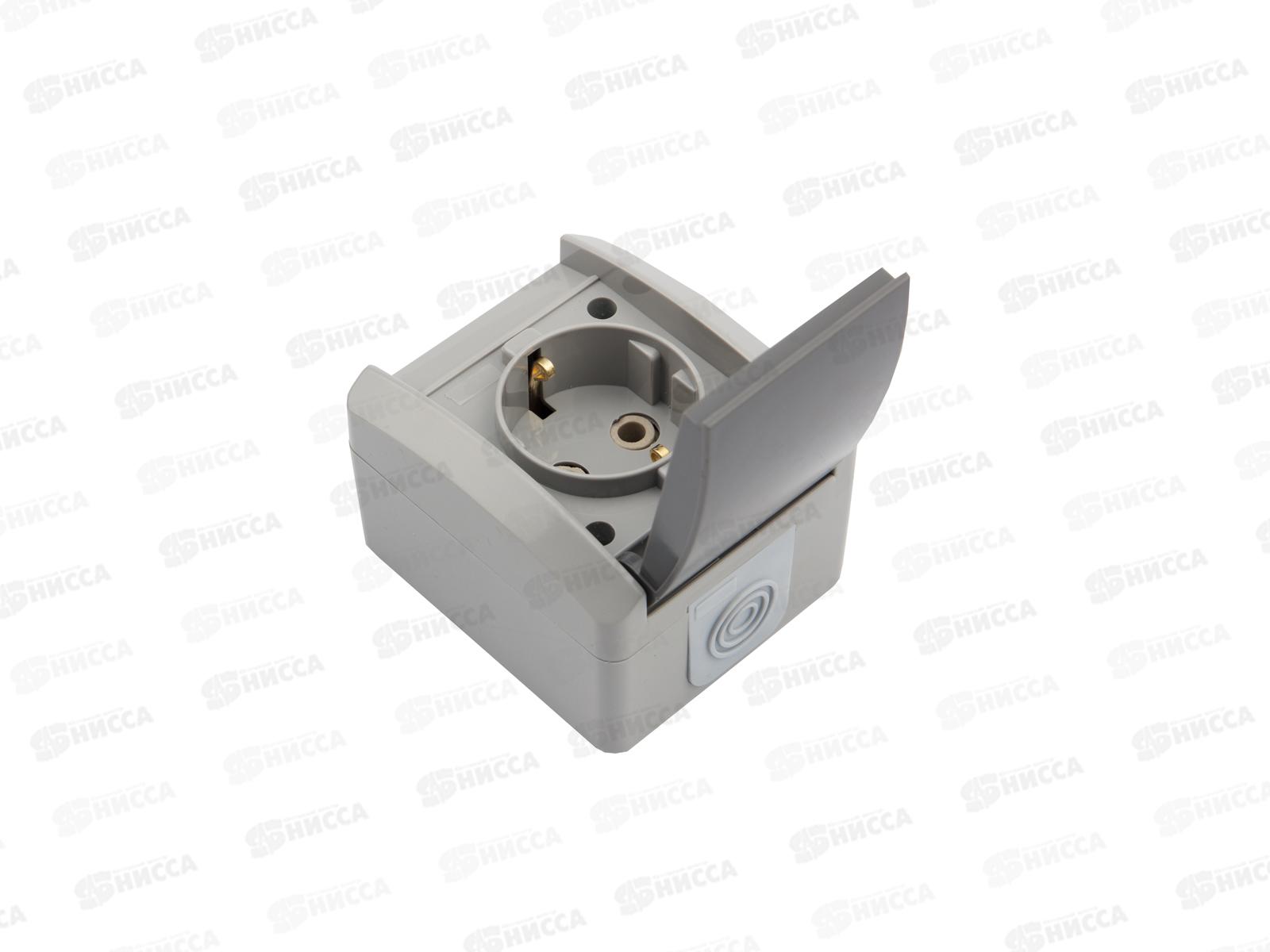 Розетка одноместная KRANZ INDUSTRIAL открытая установка с заземлением керамика, IP54,серая KR-78-0612