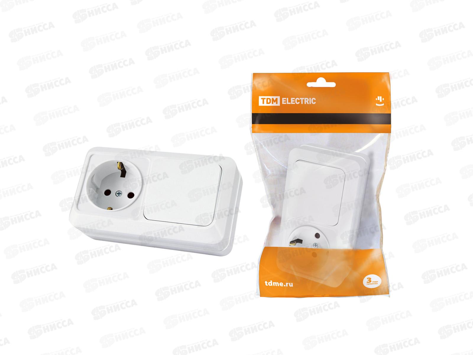 Блок (1выключатель+розетка) TDM 10А+16А БКВР IP20 "Ладога", 0101 *5/200