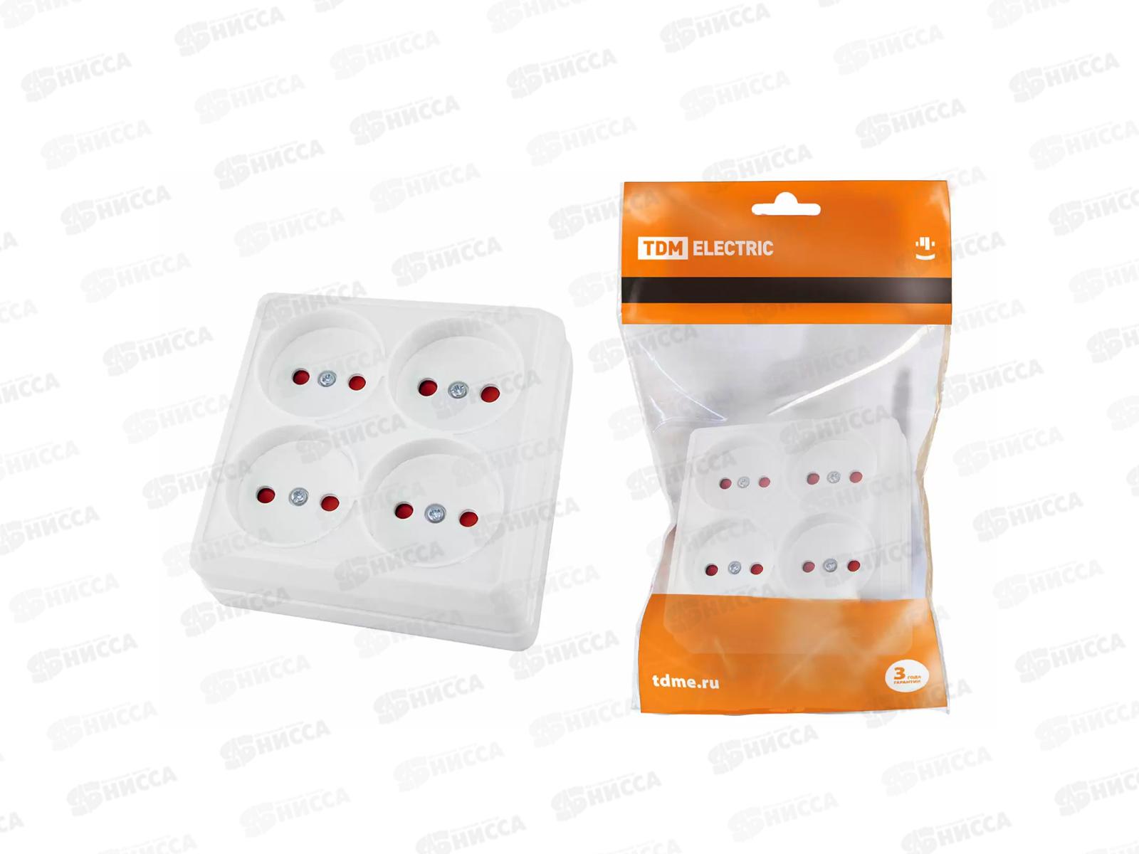 Розетка TDM четырехместная о/у, IP20 10А белый "Ладога" с защитными шторками, 0121 *6