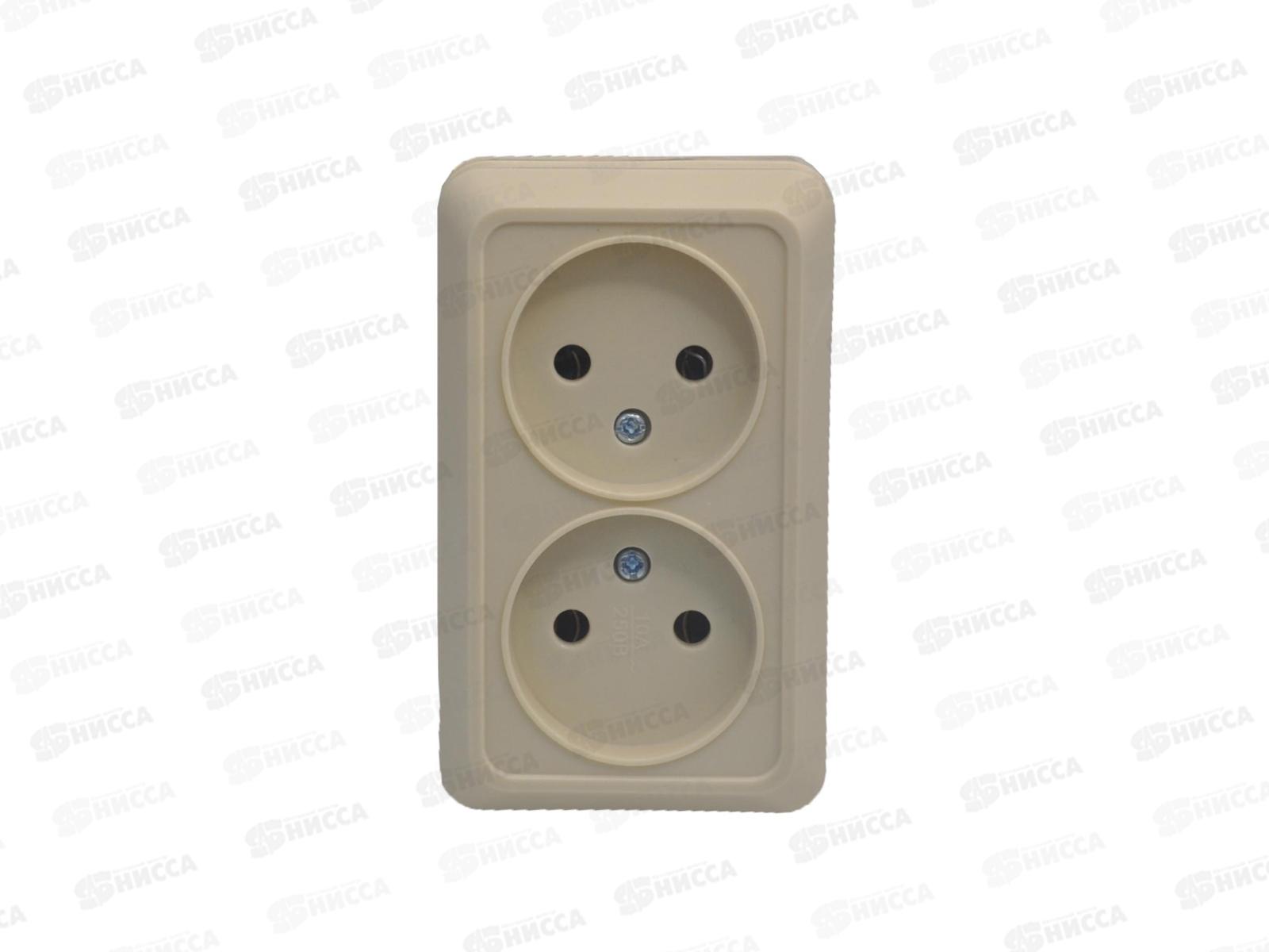 Розетка открытая установка 2 местная Прогресс б/з, бежевая *10/200