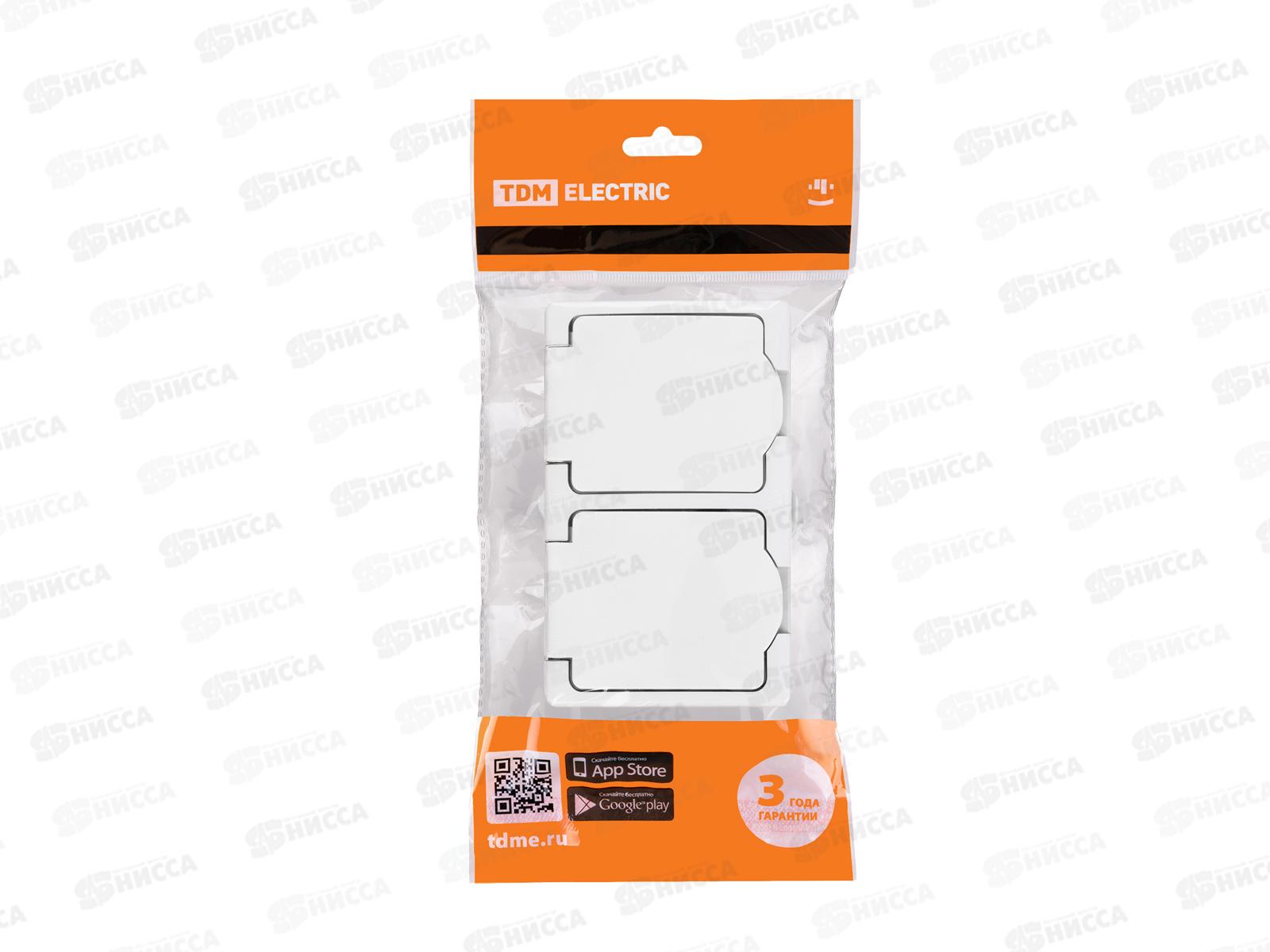Розетка TDM двойная, открытой установки, (гориз.), IP54 16А "Вуокса" 2П+3 белая 1008