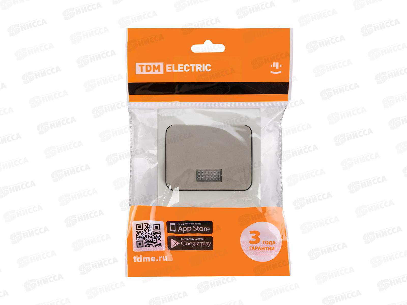 Выключатель TDM 1-клавиша, откытая установка с подсветкой IP54 10А "Вуокса" серый 0105