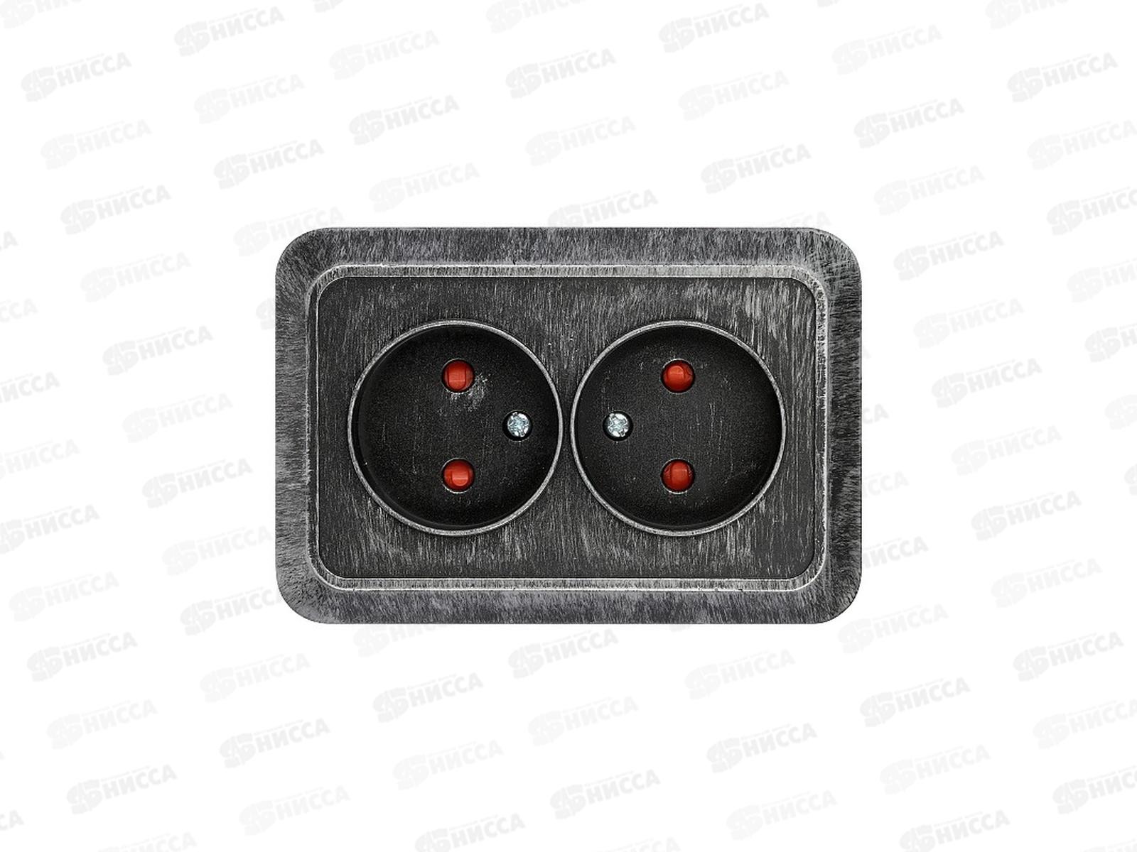 Розетка TDM двойная угловая открытой установки с з/ш, IP20 10А серебро "Ладога", 0389