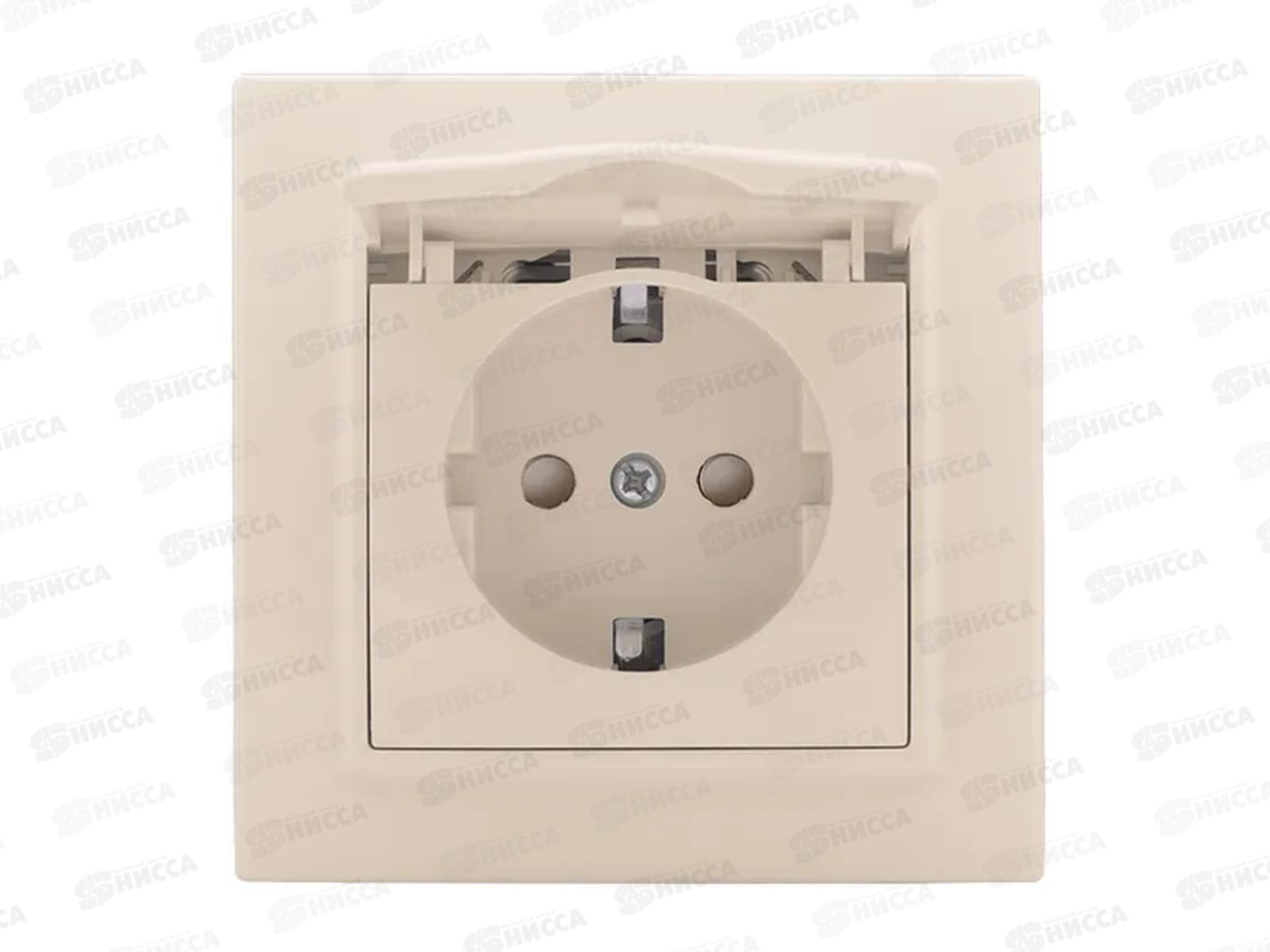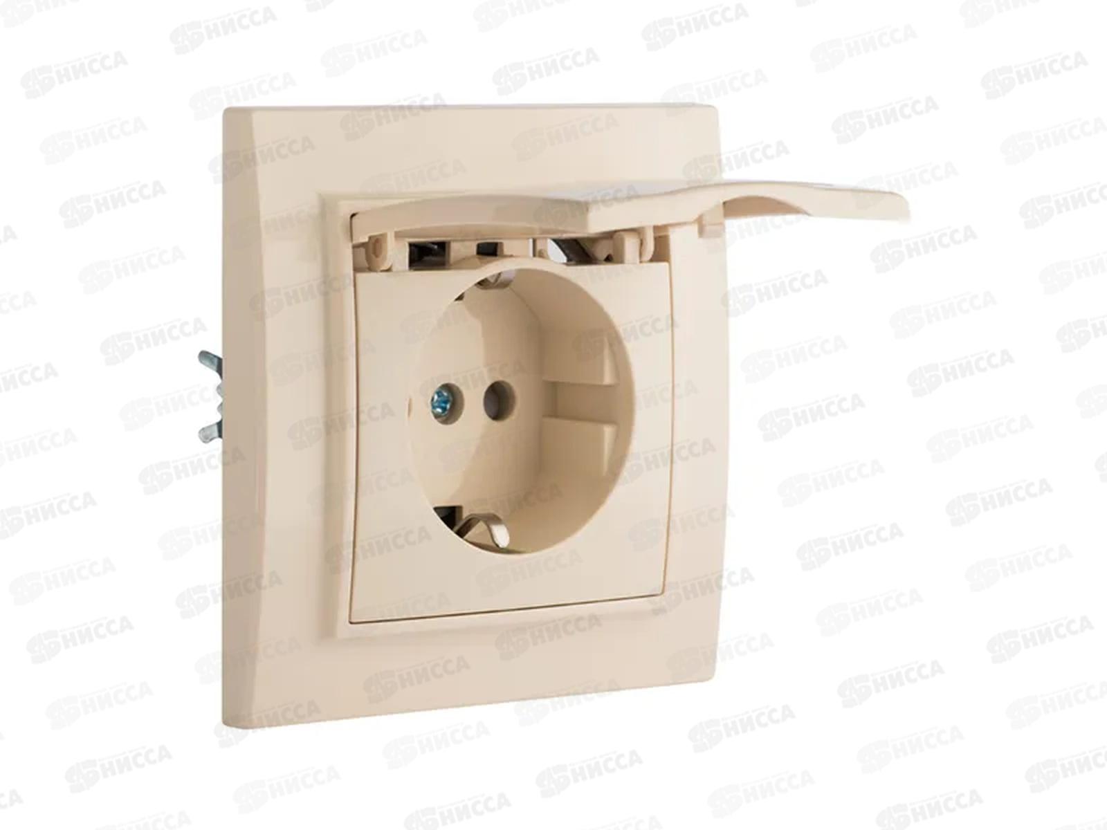Розетка EKF Минск одинарная СП с зазеилением с крышкой и защитными шторками 16А бежевая EKF