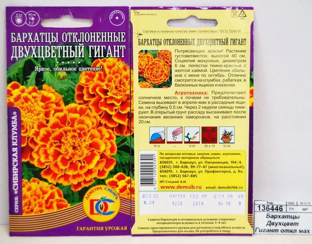 Бархатцы Двухцвет Гигант отклоненные махровые (0,2 грамм) ДемСиб*10 +