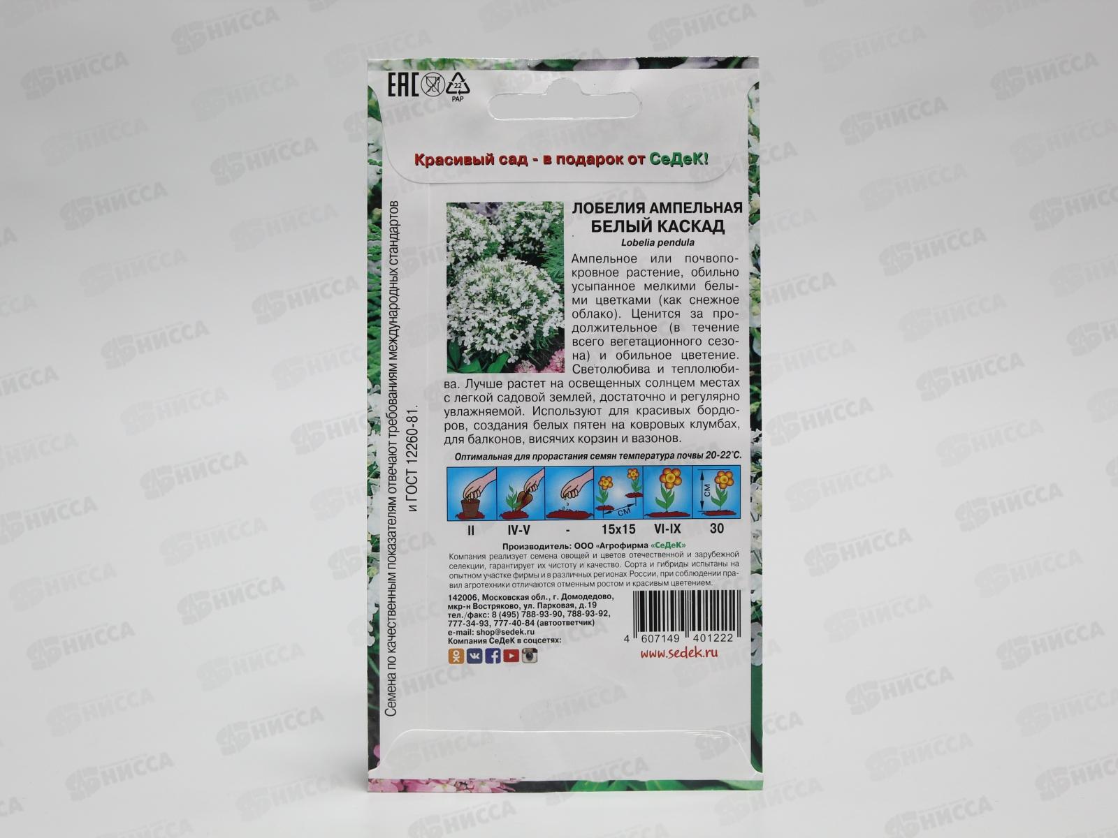 Лобелия Белый Каскад (ампельная) (Евро,0,06) СеДек *10 +
