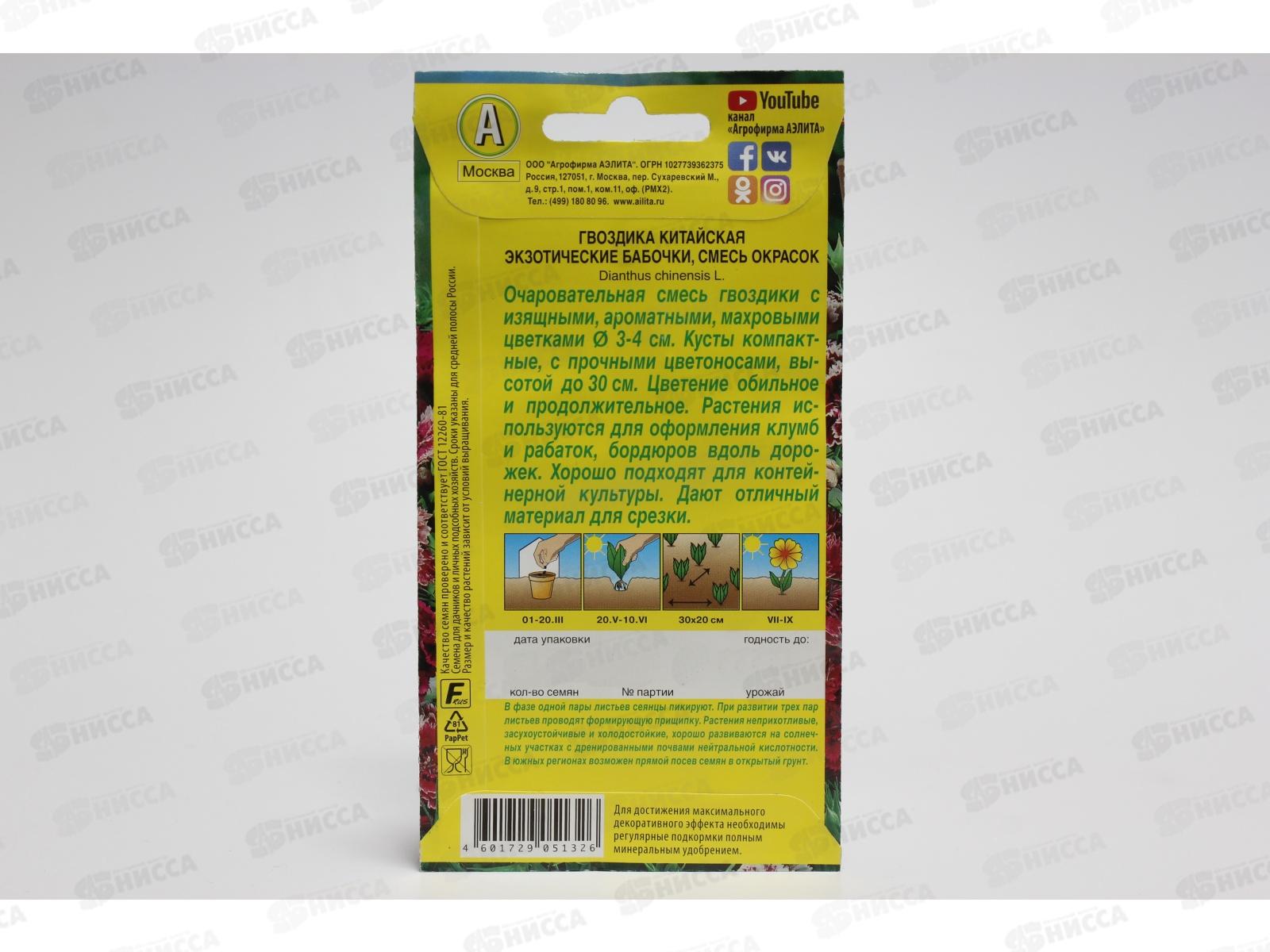 Гвоздика Экзотические бабочки,смесь окрасок *10 АЭЛИТА срок до 12.24