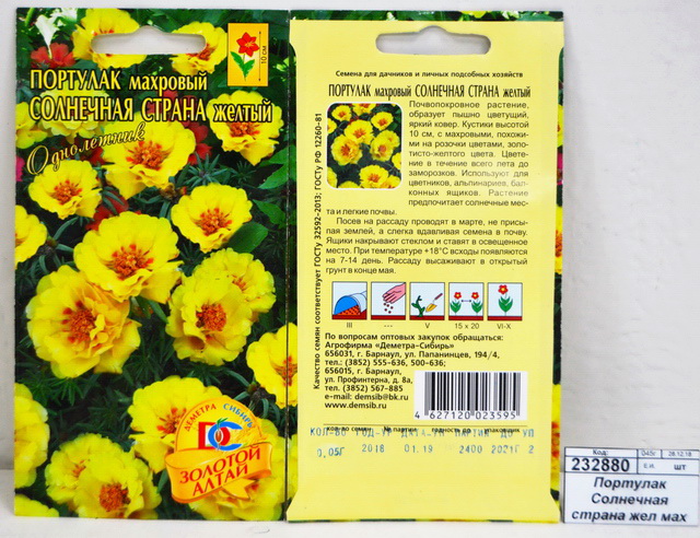 Портулак Солнечная страна желтый (0,05грамм) *10 ДемСиб +