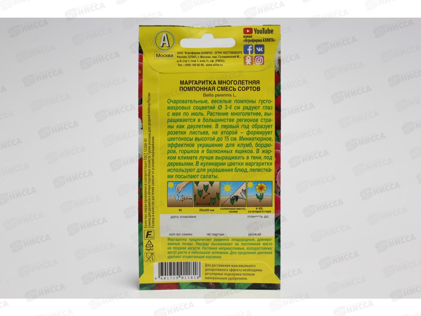 Маргаритка Помпонная, смесь окрасок *10 АЭЛИТА +