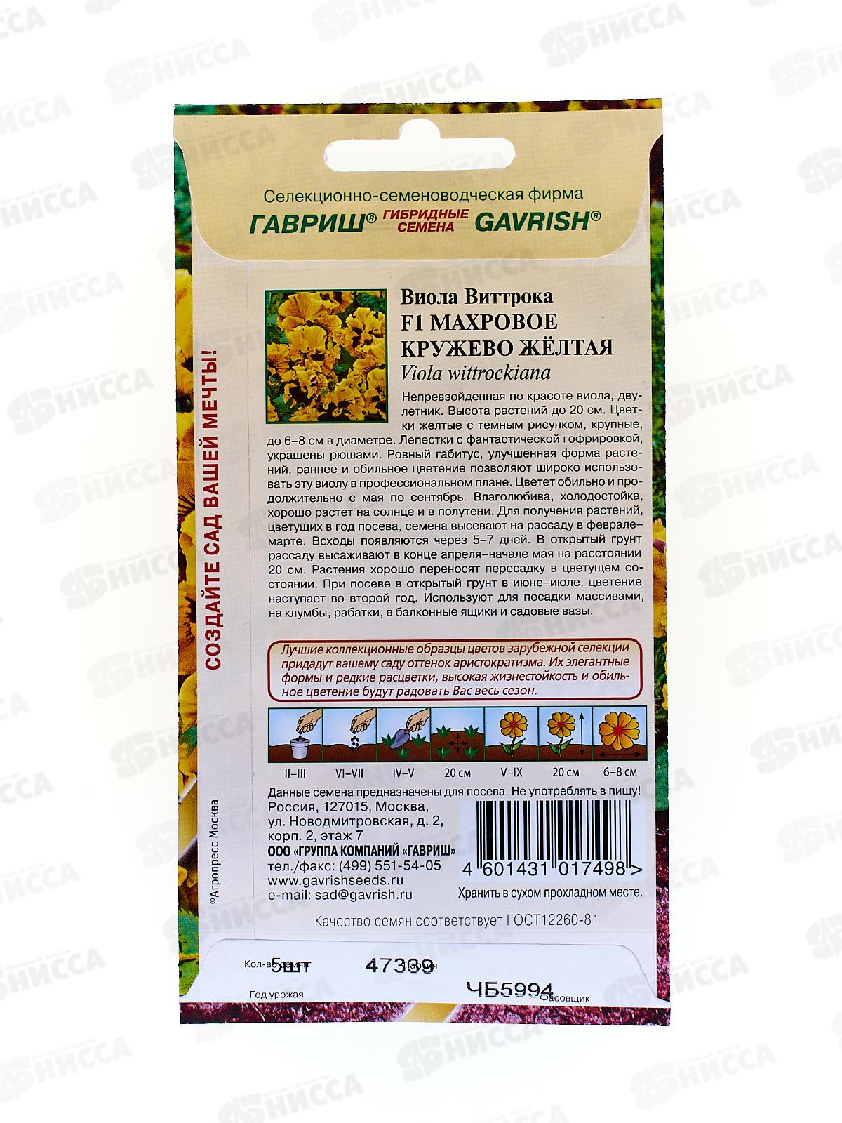 Виола Махровое кружево желтая Виттрока (Анютины глазки) 5шт *10 ГШ +