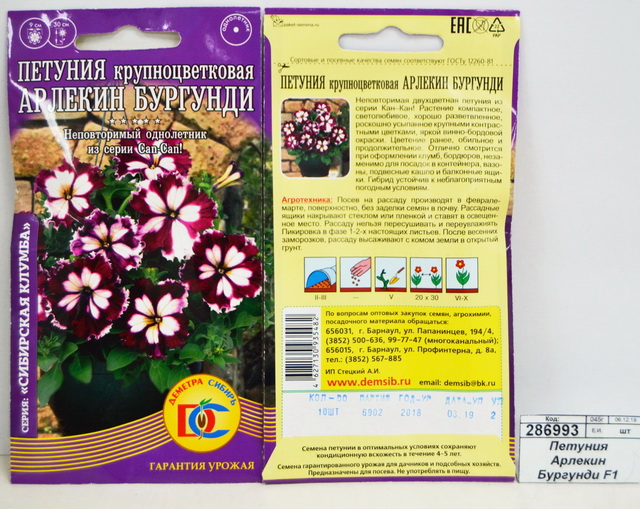Петуния Арлекин Бургунди F1 (10 штук) *10 ДемСиб +