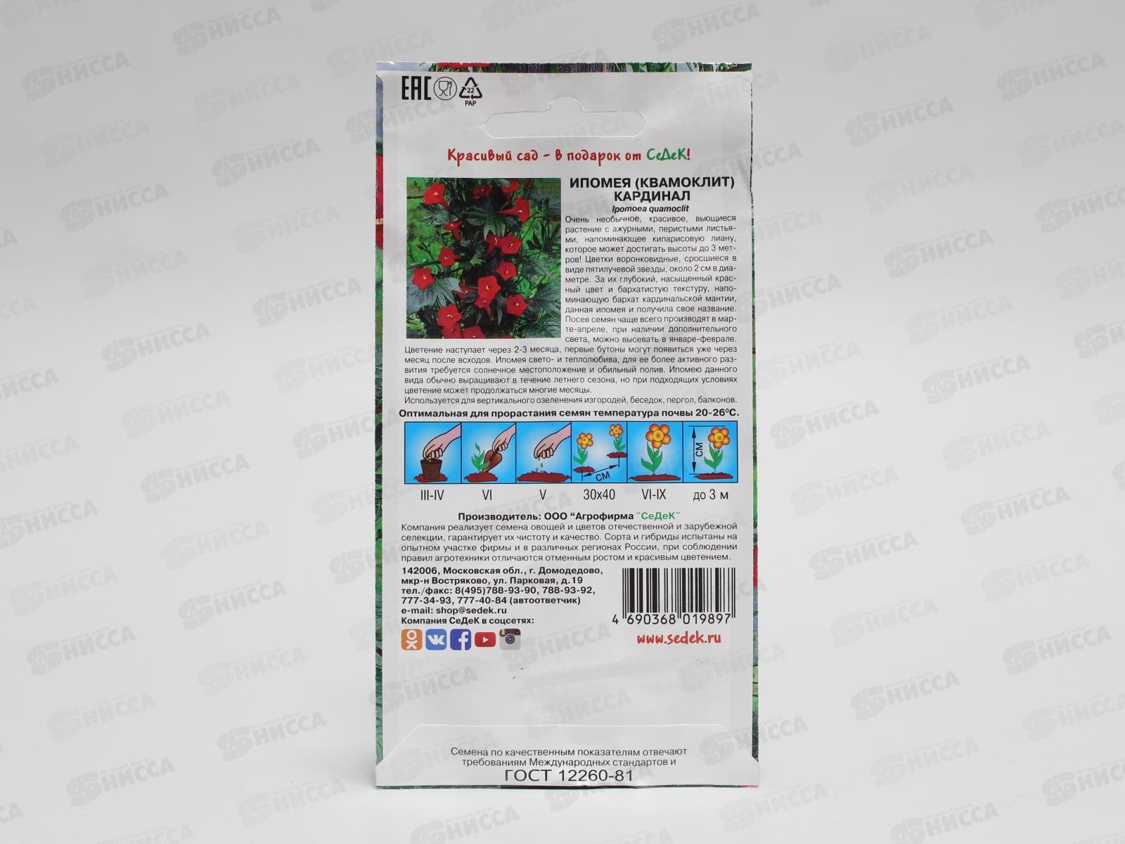Ипомея Кардинал (квамоклит, красная) (Евро 0,5) СеДек ДО 12.25. *10 +