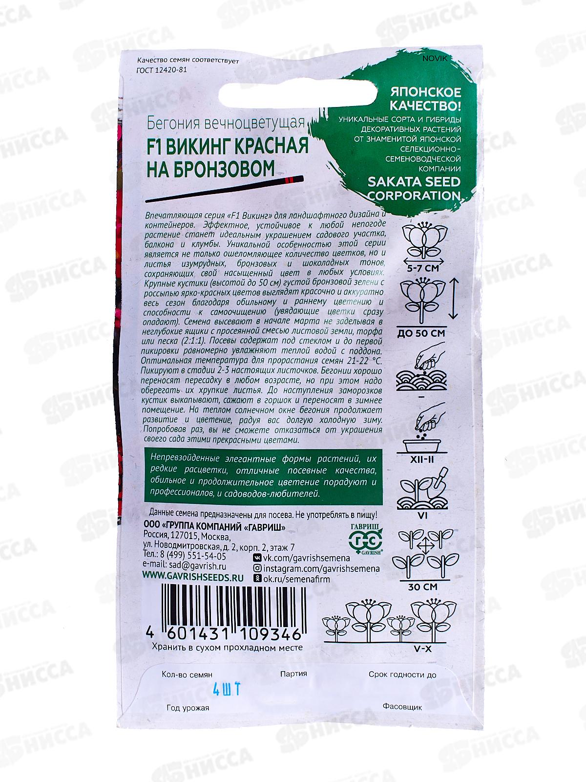 Бегония Викинг красная на бронзовом F1 гранул 4шт пробир *5 ГШ СРОК ДО 12.24