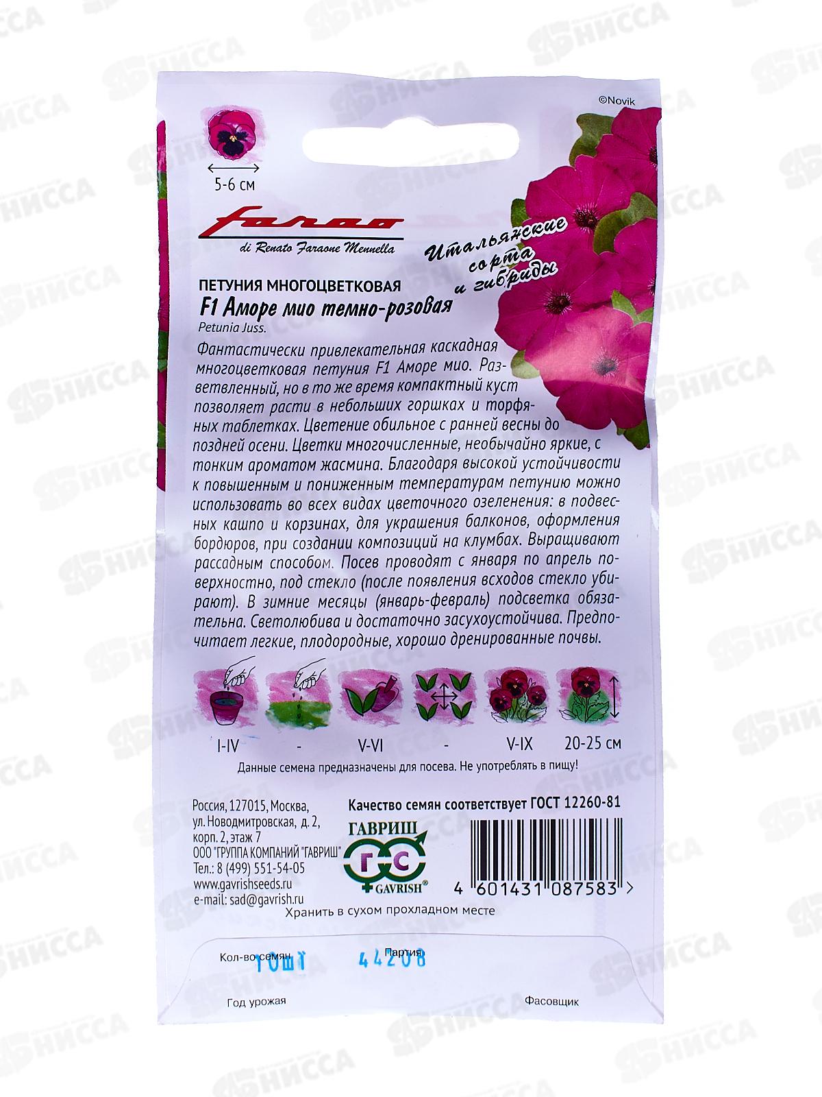 Петуния Аморе мио темно-розовая F1 10шт в пробирке Н18 *10ГШ +