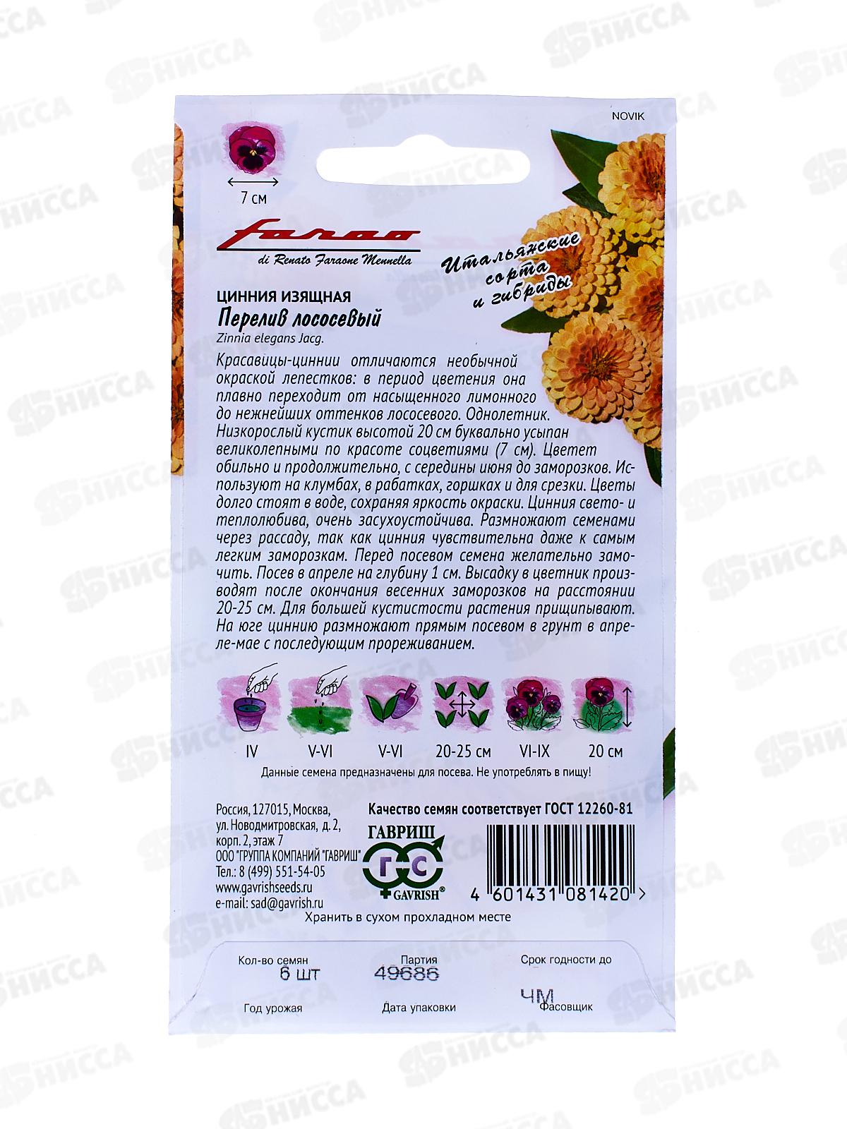 Цинния Перелив лососевый 6шт *5 ГШ СРОК ДО 12.24