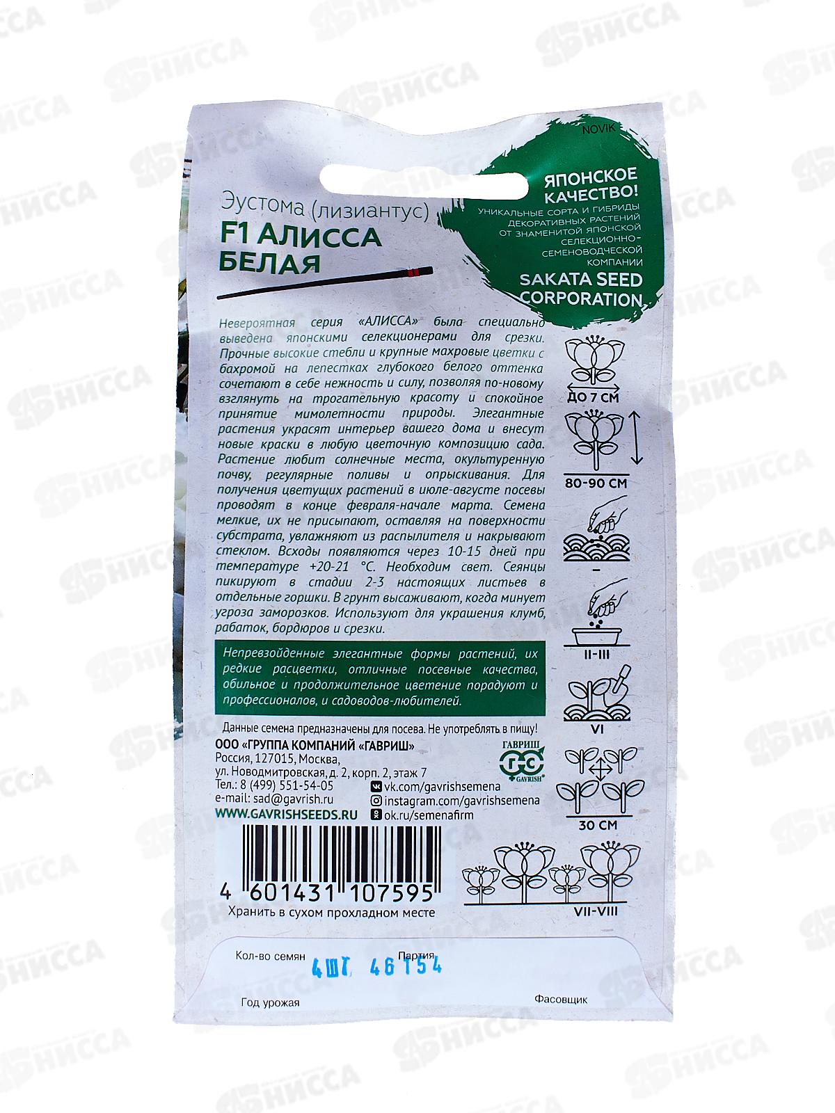 Эустома Алисса белая F1 4шт гранул пробир *10 ГШ