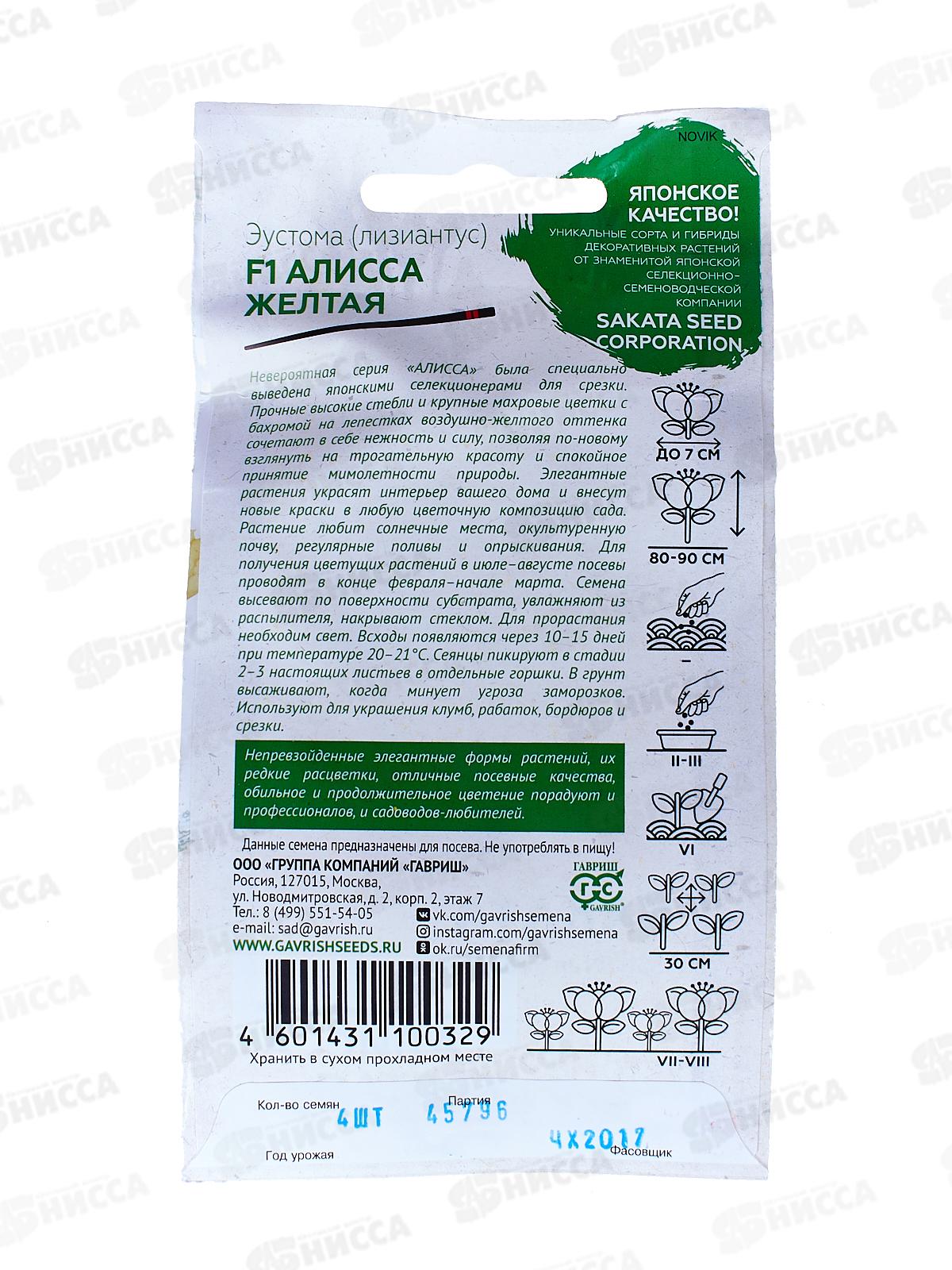 Эустома Алисса желтая F1 4шт гранулы в пробирке *5 ГШ +