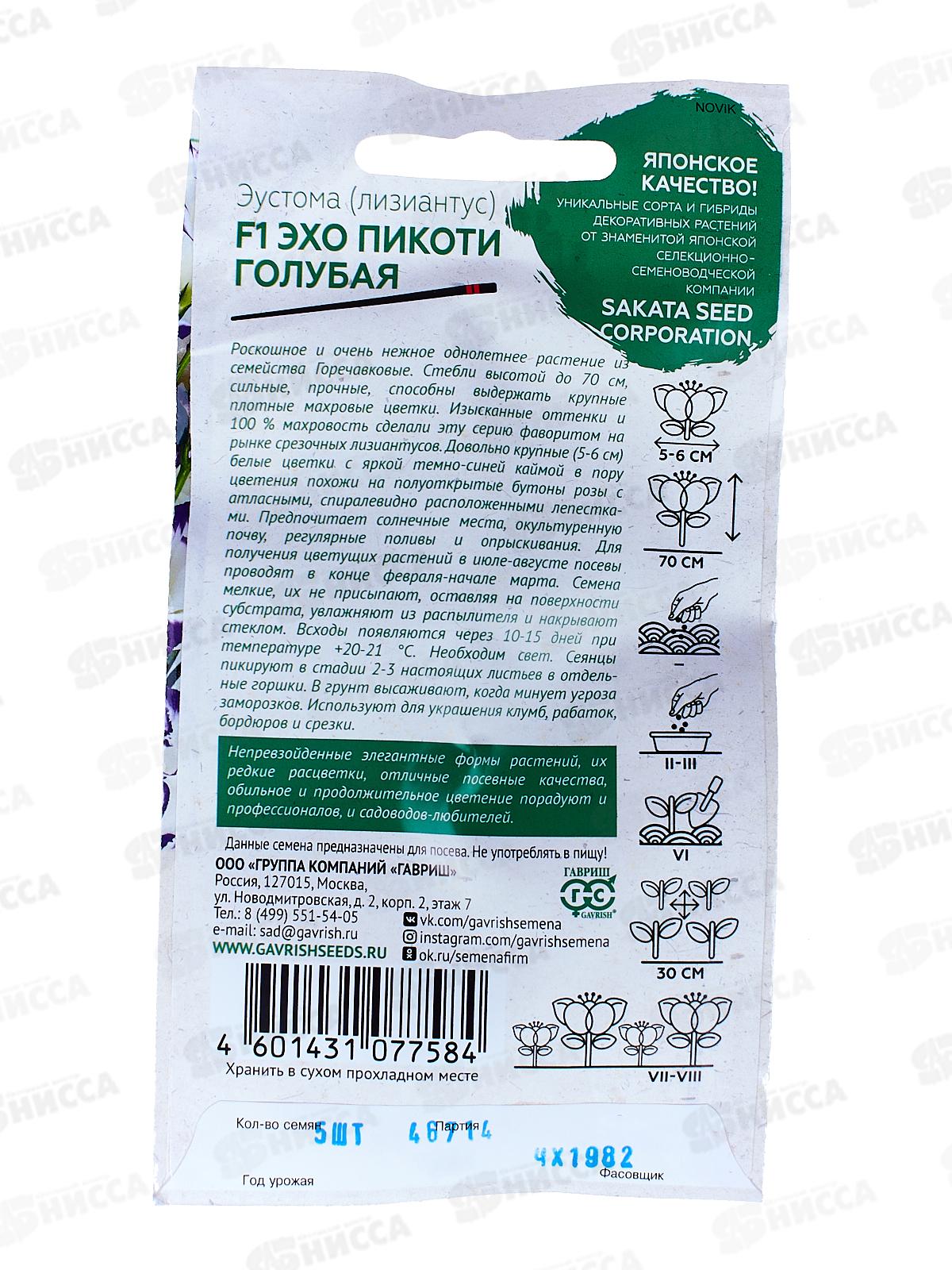 Эустома Эхо пикоти голубая F1 5шт гранулы в пробирке *10 ГШ