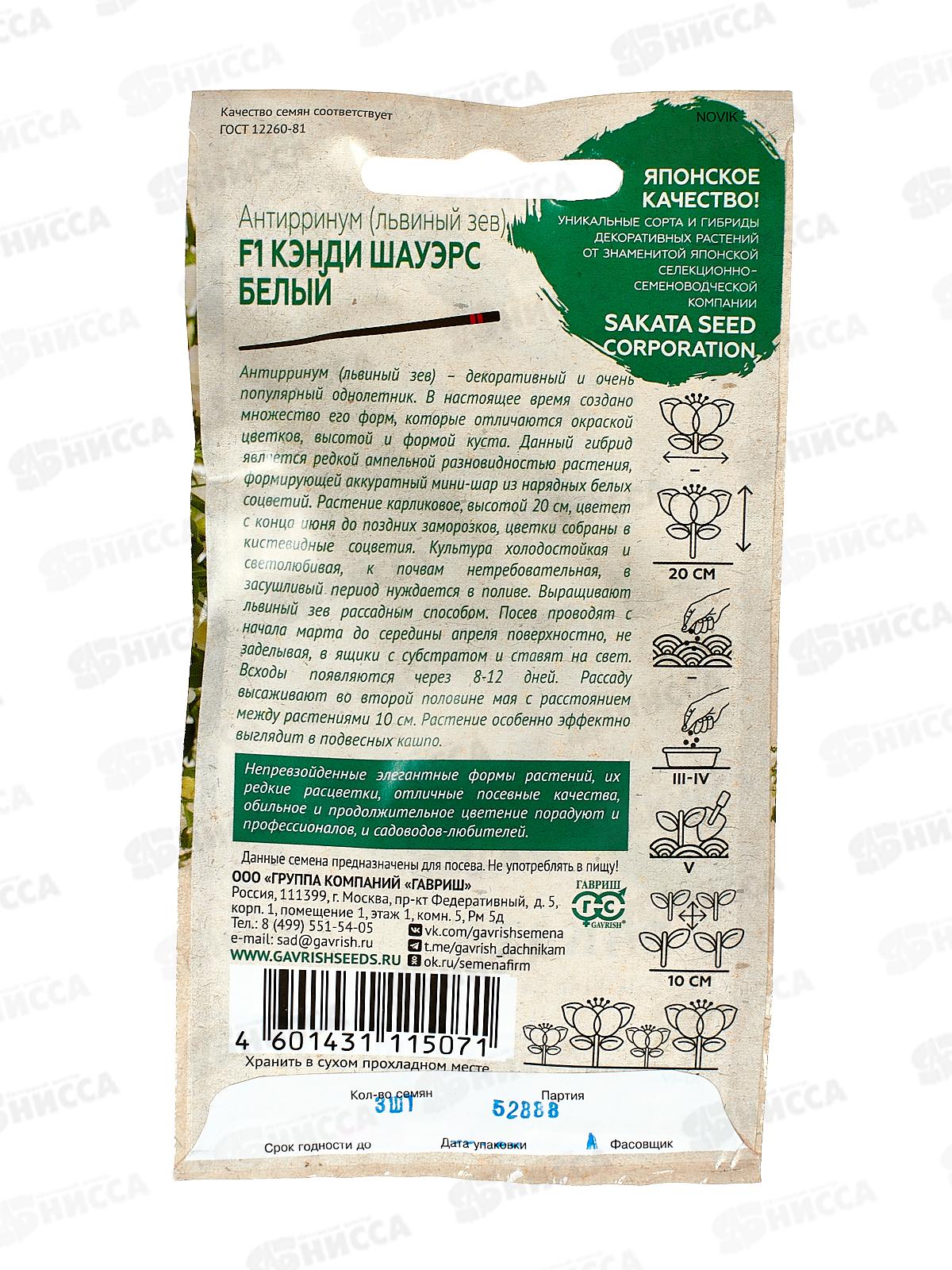 Львиный зев Кэнди Шауэрс белый F1 3шт Саката Н22 *10 ГШ +