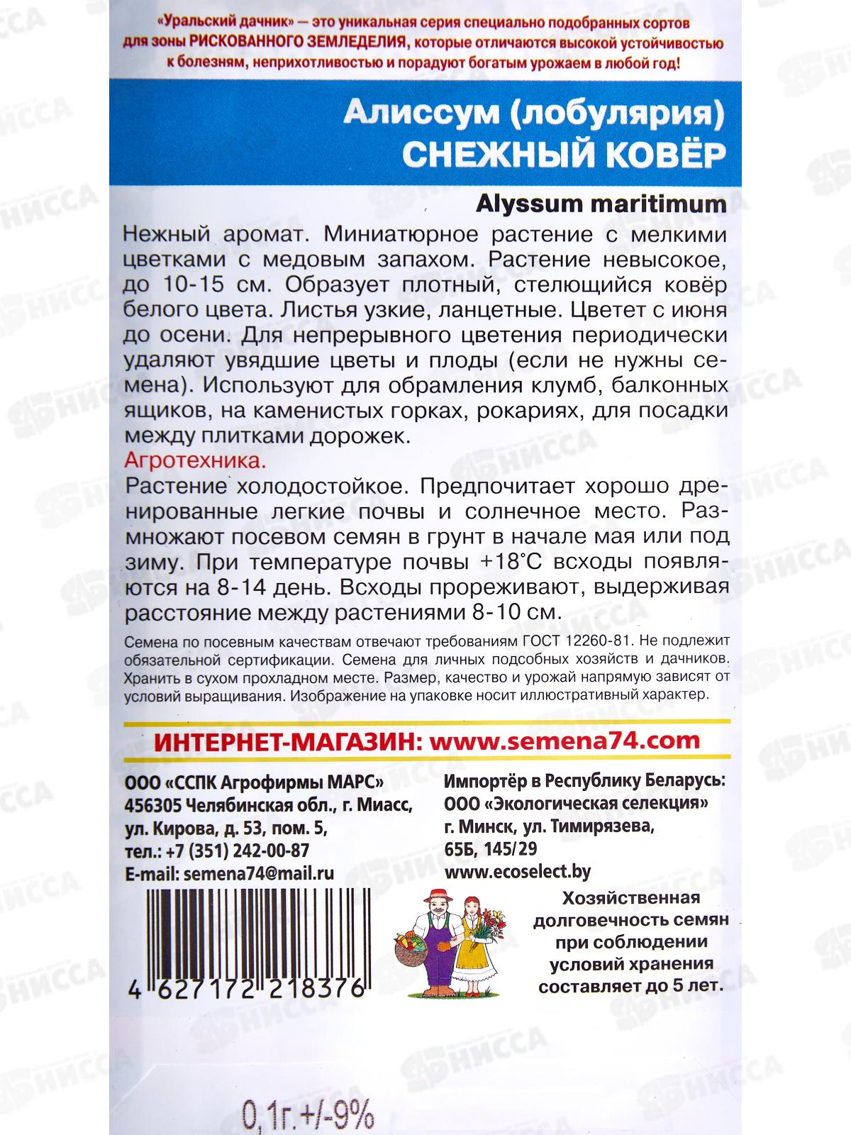 Алиссум Снежный ковер Евро *10 УрД +