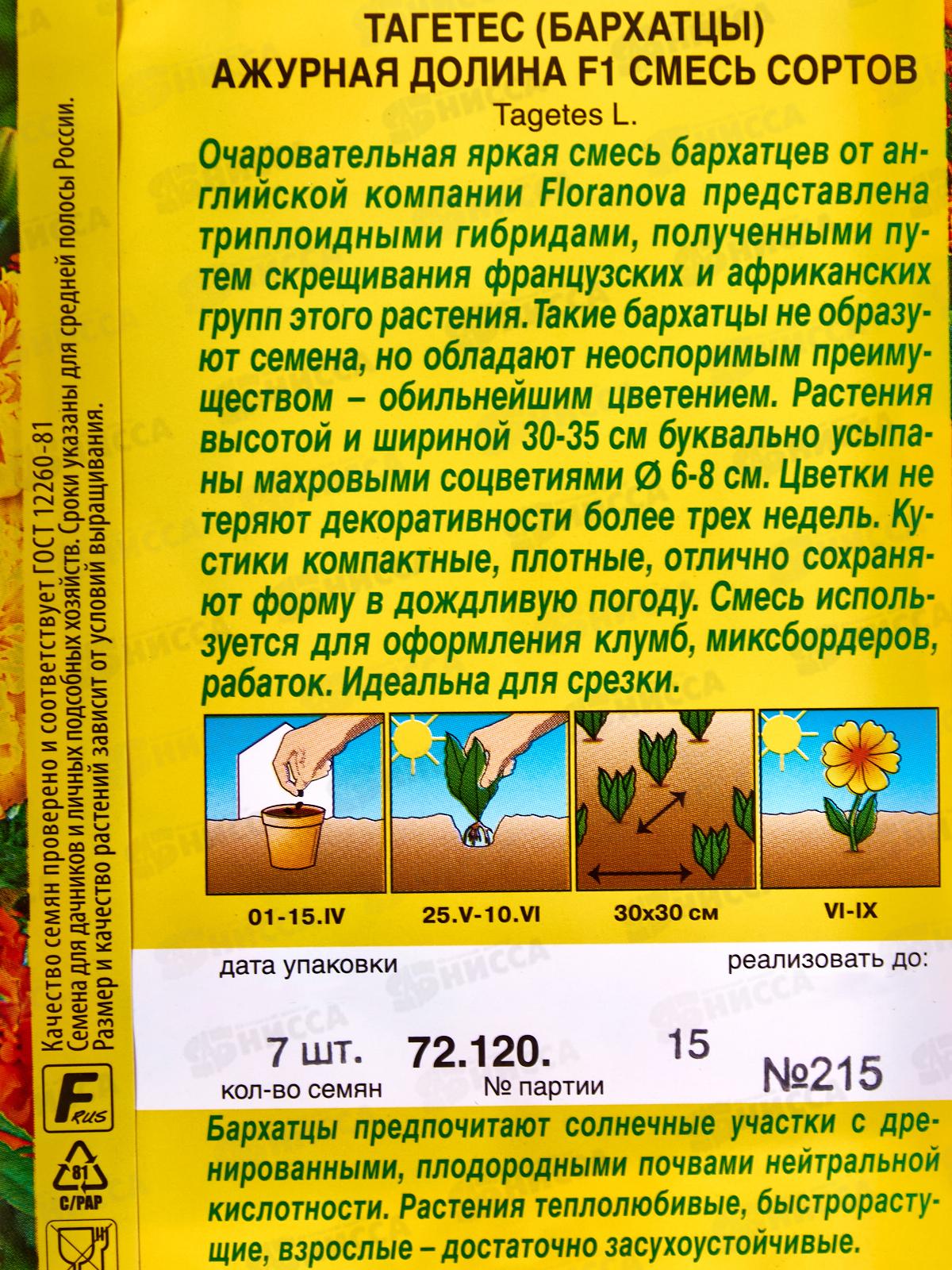 Бархатцы Ажурная долина F1 смесь окрасок *10 АЭЛИТА +