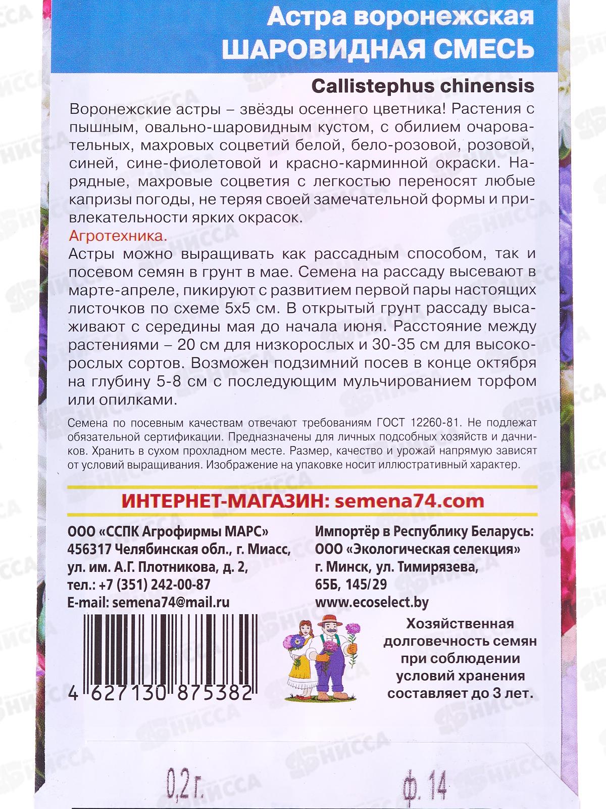 Воронежские астры – звёзды осеннего цветника! Растения с пышным, овально-шаровидным кустом, с обилием очаровательных, махровых соцветий белой, бело-розовой, розовой, синей, сине-фиолетовой и красно-карминной окраски. Нарядные, махровые соцветия с легкостью переносят любые капризы погоды, не теряя своей замечательной формы и привлекательности ярких окрасок. Астры можно выращивать как рассадным способом, так и посевом семян в грунт в мае. Семена на рассаду высевают в марте-апреле, пикируют с развитием первой пары настоящих листочков по схеме 5х5 см. В открытый грунт рассаду высаживают с середины мая до начала июня. Расстояние между растениями – 20 см для низкорослых, и 30-35 см для высокорослых сортов. Возможен подзимний посев в конце октября на глубину 5-8 см с последующим мульчированием торфом или опилками.