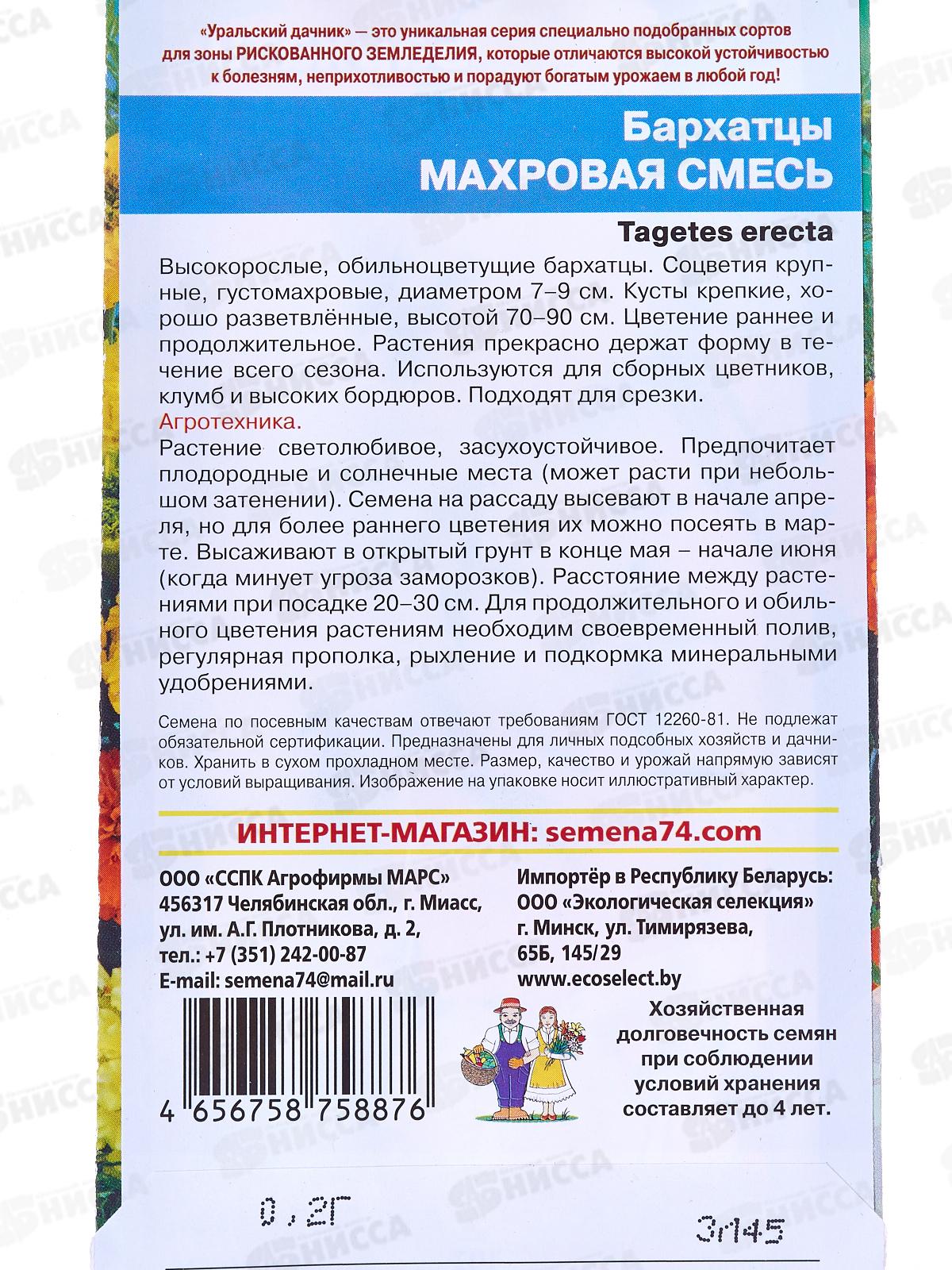 Обильное и продолжительное цветение. Растение высотой до 90 см. Цветки собраны в крупные, махровые и шарообразные соцветия - корзинки, диаметром до 10 см, жёлтой и оранжевой окраски. Цветет с июня до заморозков. Чтобы продлить цветение, необходимо удалять увядшие цветки. Используют для клумб, рабаток, высоких групп, балконов и срезки. Растение теплолюбивое, засухоустойчивое. Предпочитает солнечное место, к почвам не требовательно. Семена высевают в апреле - мае в рассадные ящики. Глубина заделки семян 0,5-1 см. При температуре +18 °C всходы появляются на 7-15 день. Через 2 недели сеянцы пикируют. В грунт рассаду высаживают после окончания весенних заморозков, выдерживая расстояние между растениями 20-30 см.