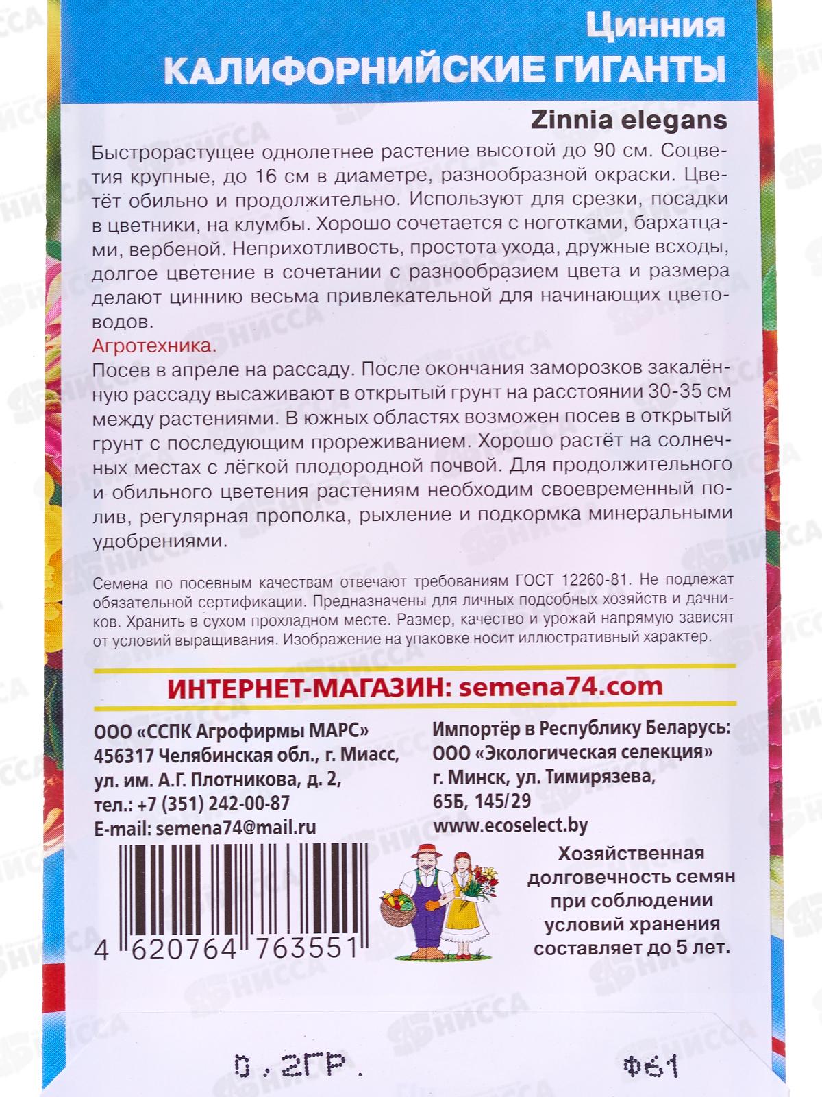 Цинния Калифорнийские Гиганты Евро *20 УрД +