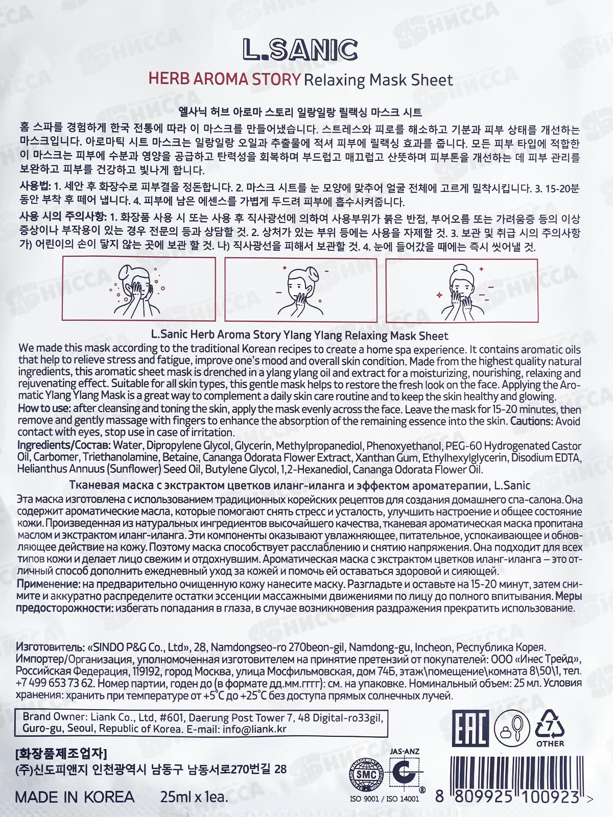 L.Sanic Маска тканевая H.A.A. с экстр иланг-иланга и эфф ароматер 25мл