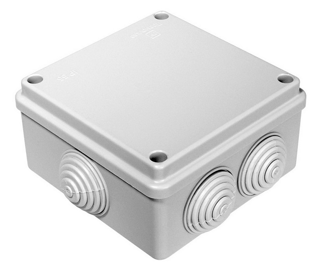 Распаячная коробка открытой установки 100х100х55мм, крышка, IP54, 8вх. TDM, 0113 *10/60