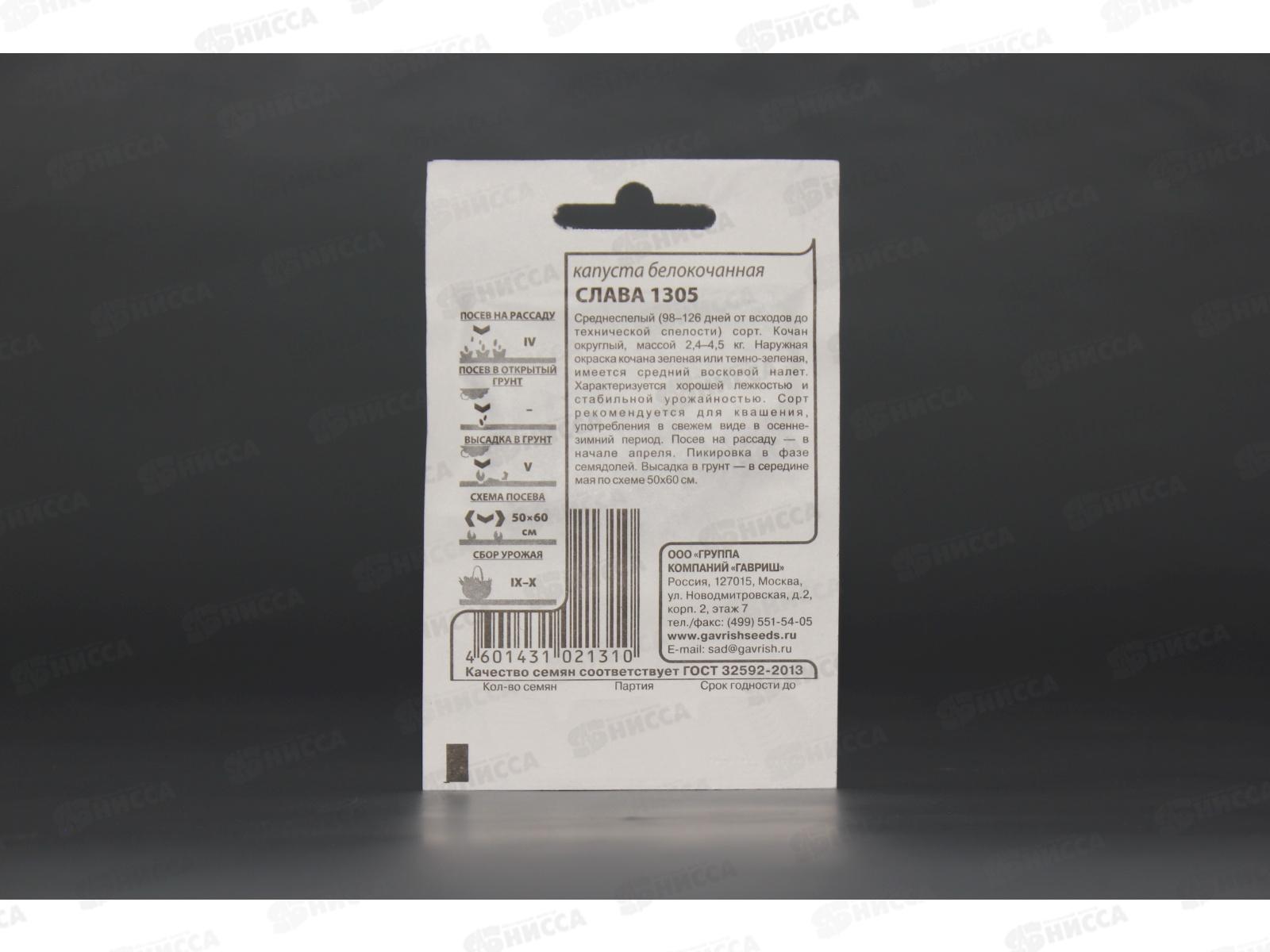 Капуста белокочанная слава 1305 0,5г для квашения Белый пакет *20 ГШ +
