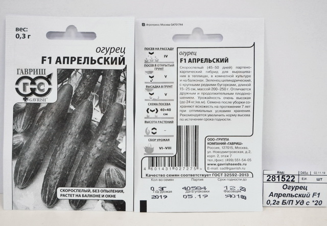 Огурец Апрельский F1 0,2грамма белый пакет Удачная серия *20 ГШ +