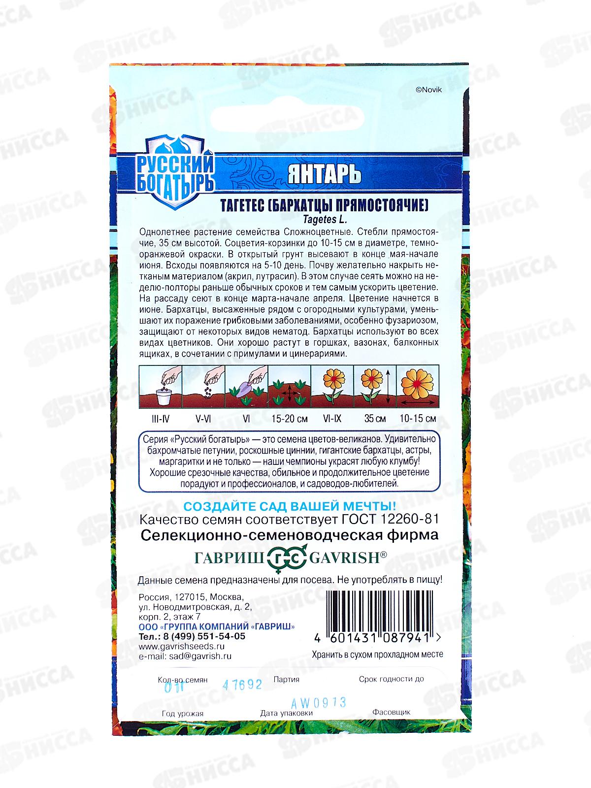 Бархатцы прямостоячие Янтарь 30см (Тагетес) 0,1г Н18 *10 ГШ +