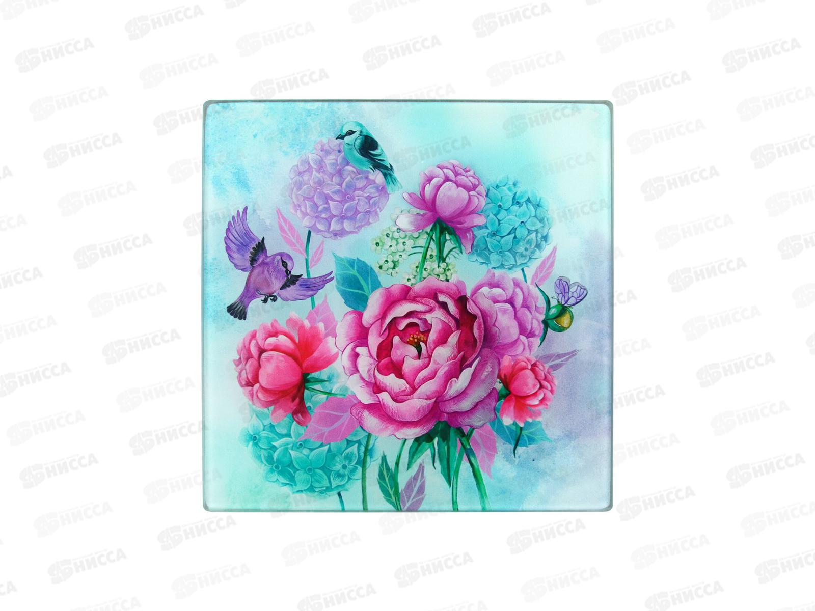 Доска разделочная Подставка под горячее Пионы и птички VL48-15