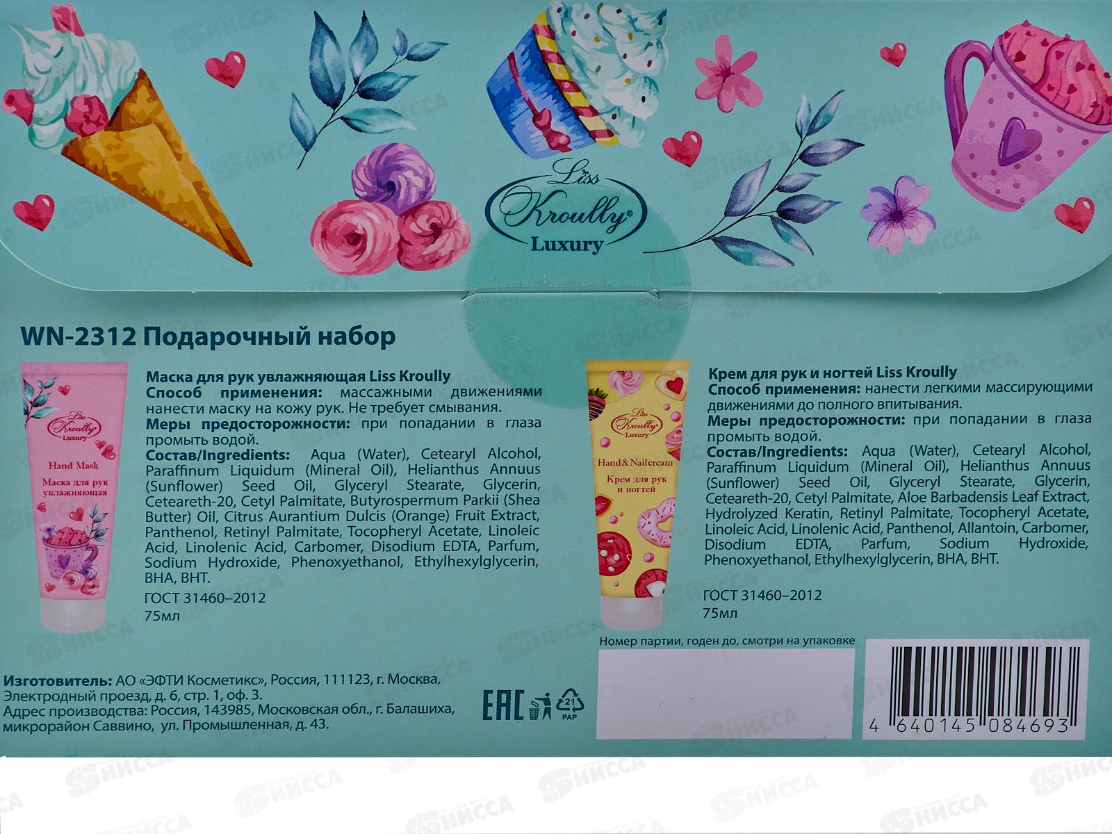 LISS KROULLY Подарочный Набор WN-2312 (крем для рук, ногтей+маска для рук) 2*75мл*12