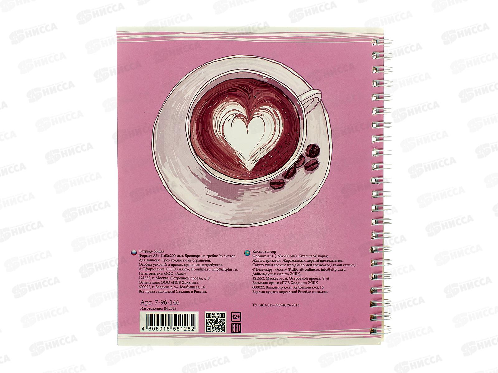 Тетрадь 96листов клетка АЛЬТ А5+ГР. "Счастье в кофе" 5видов 7-96-146*20