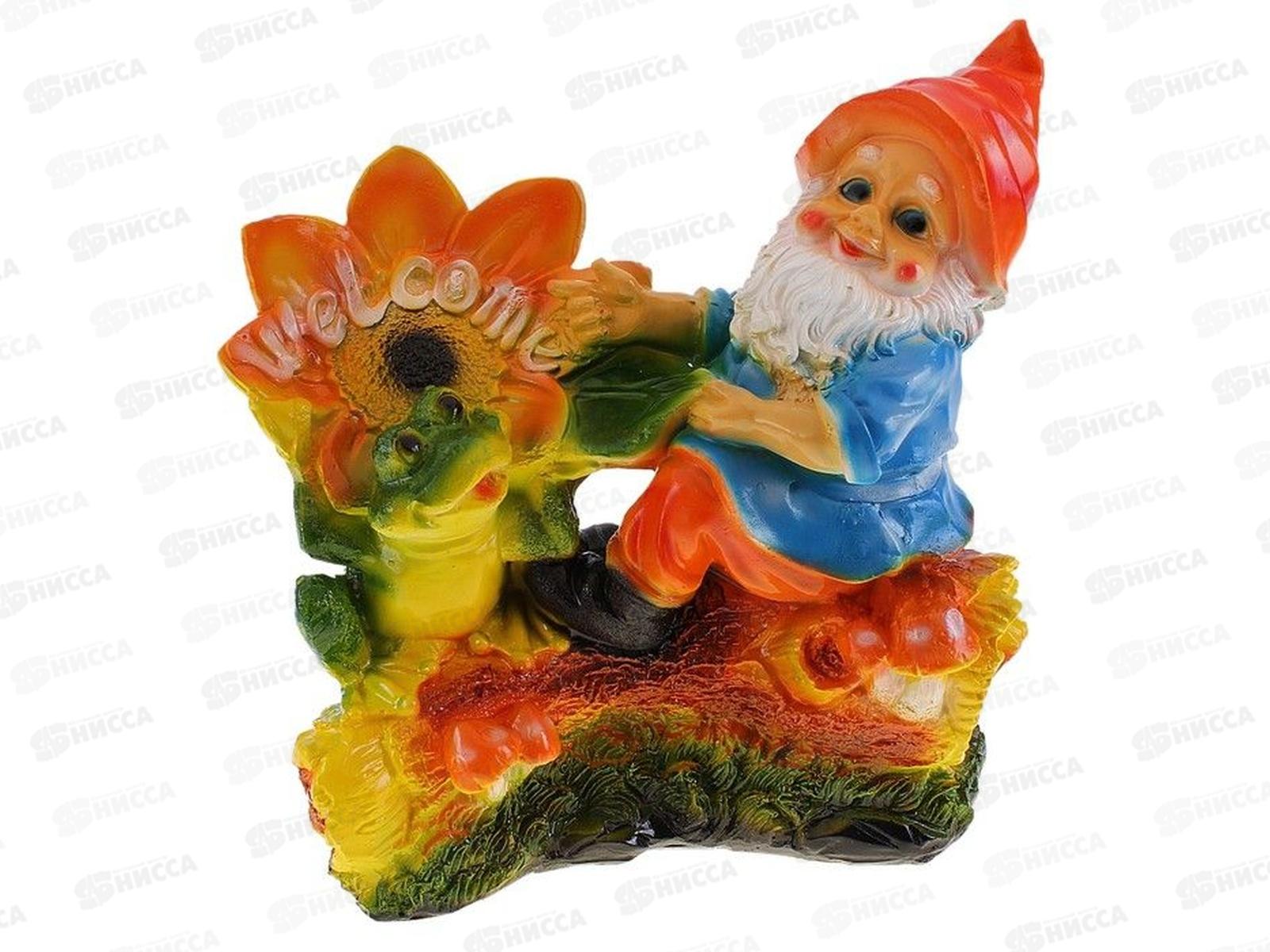 Фигура садовая из гипса "Гном с лягушкой на бревне" (250*260мм) арт.145