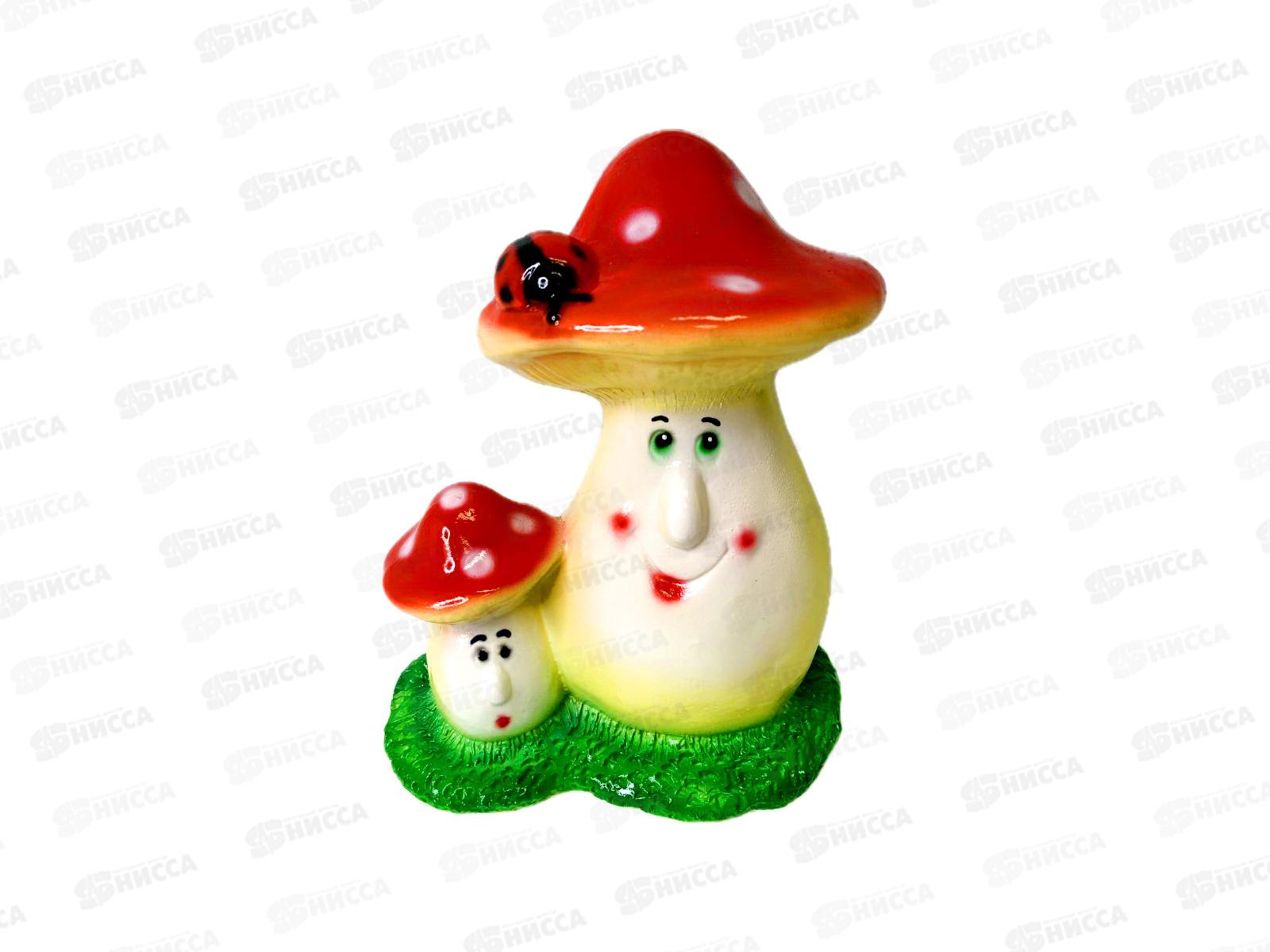 Фигура садовая из гипса "Два мухомора с коровкой" (200*170мм) арт.456
