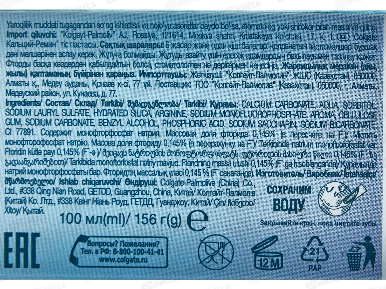 КОЛГЕЙТ 100мл Кальций Ремин зубная паста *12/48