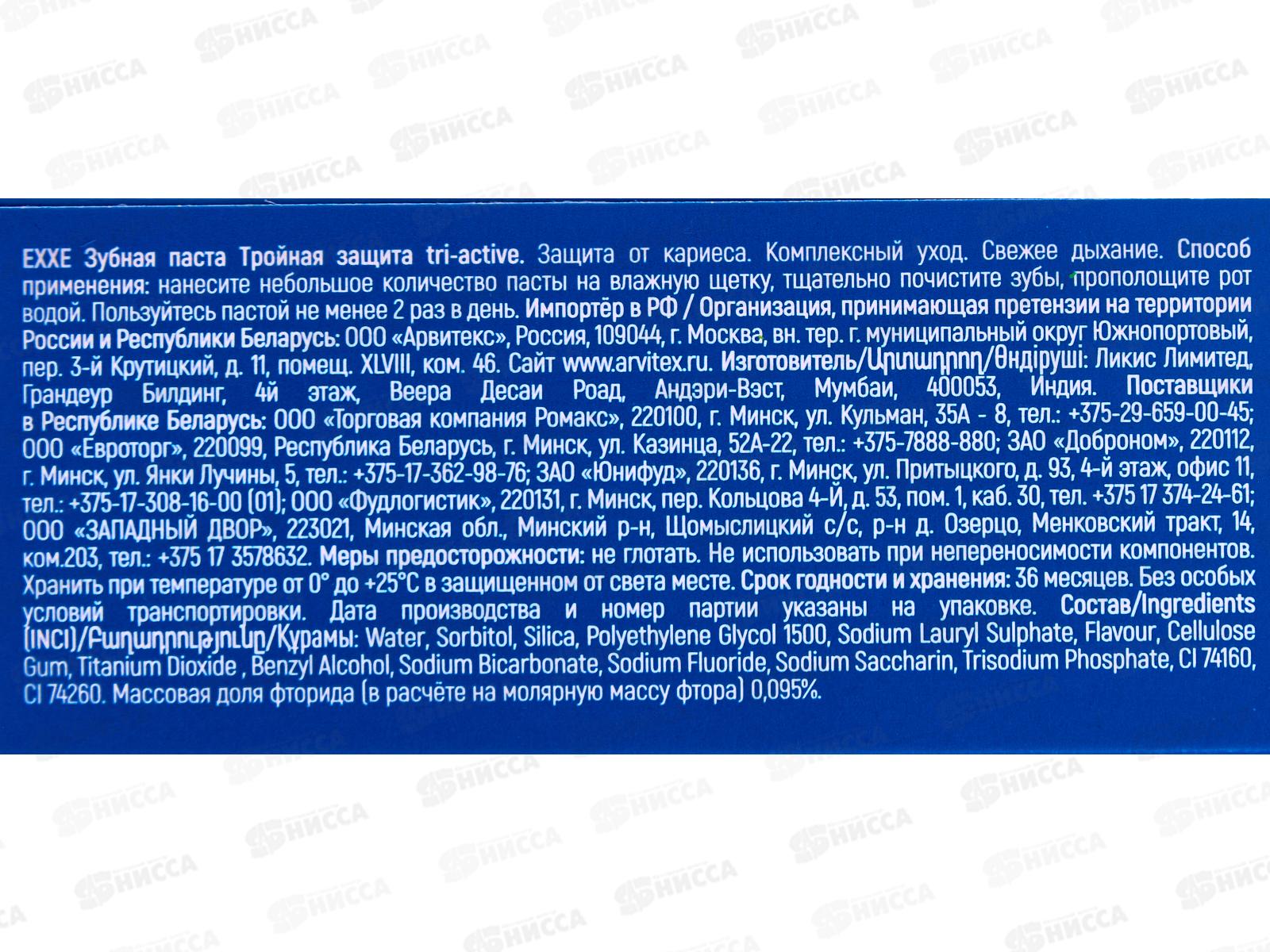 EXXE зубная паста Тройная защита 100мл *72 С0007361