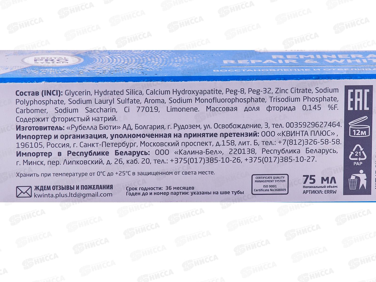 Evermex зубная паста ReminerRepair&White 75мл 3854 *12