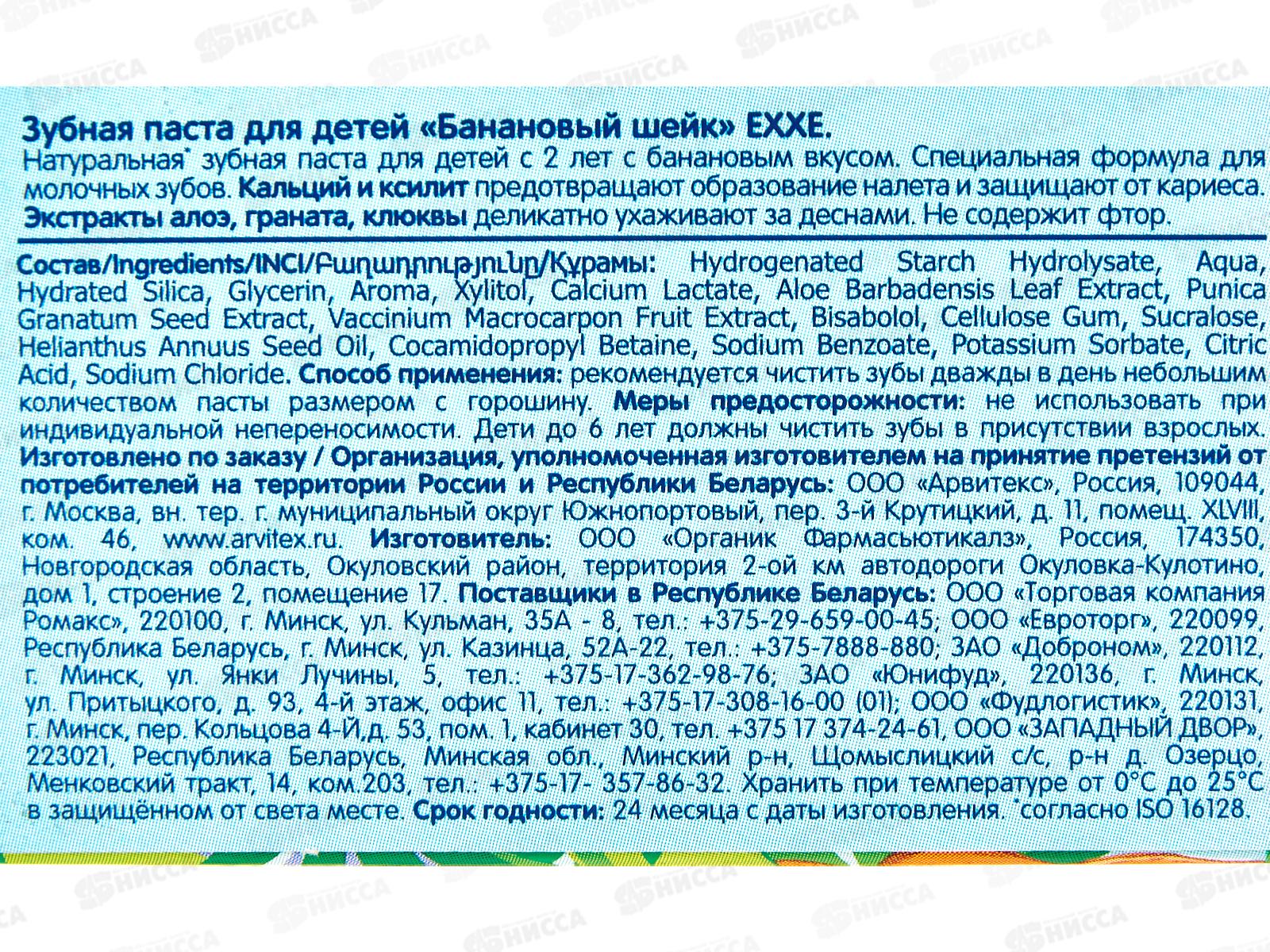 EXXE зубная паста детская Банановый шейк 50г *12 С0007966