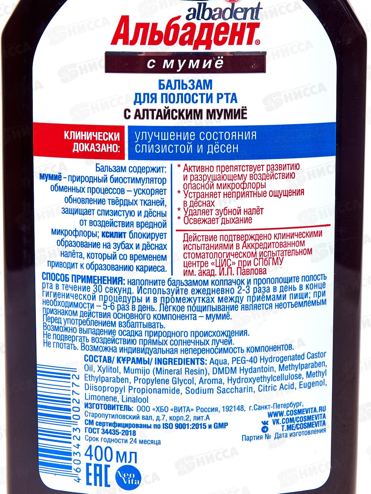 Альбадент Бальзам для полости рта с мумие 400мл В-277 *18
