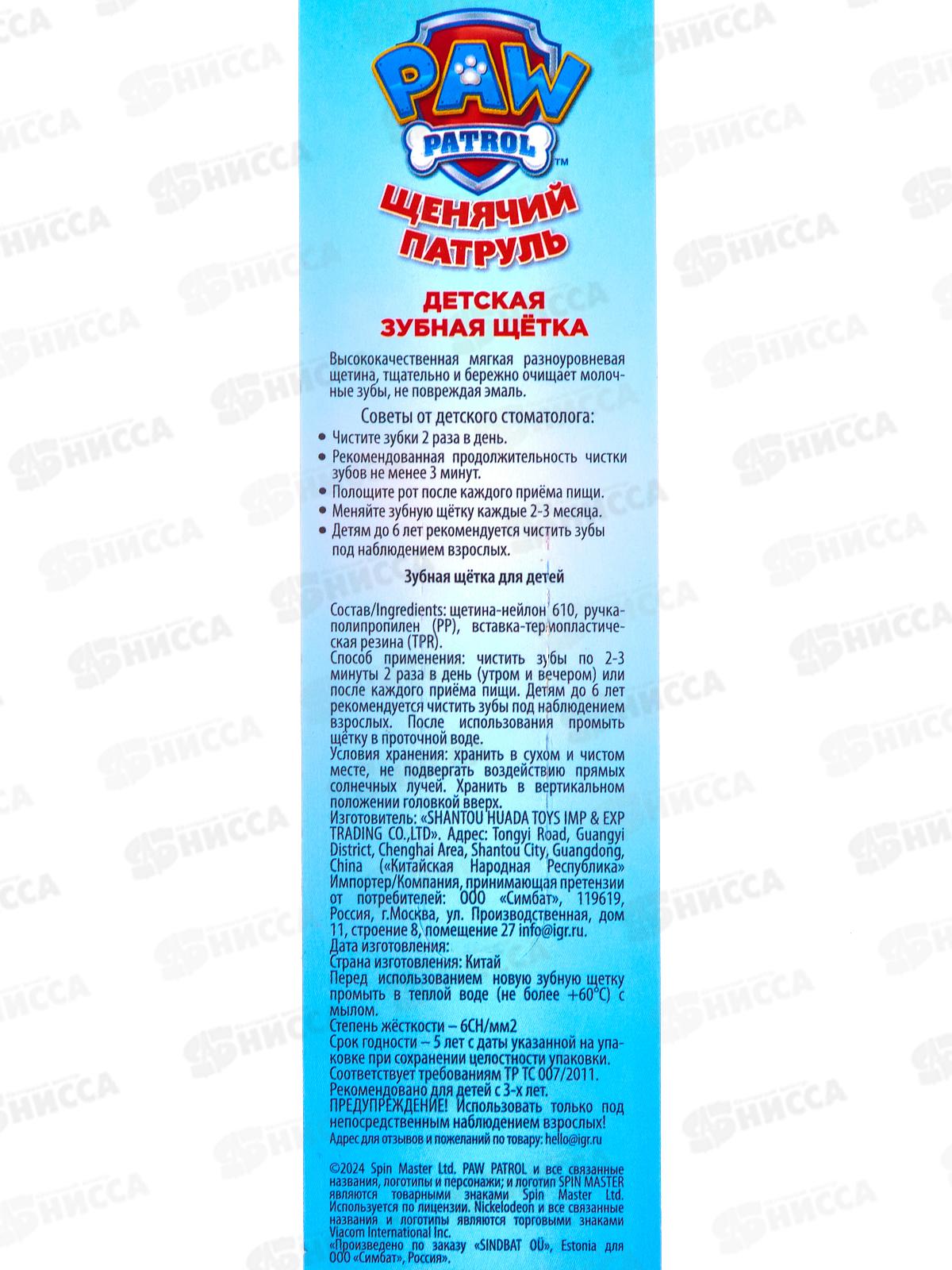 Зубная щетка УМКА MASTER DENT фигурная для детей Щенячий Патруль, синяя, 121309-SD *12