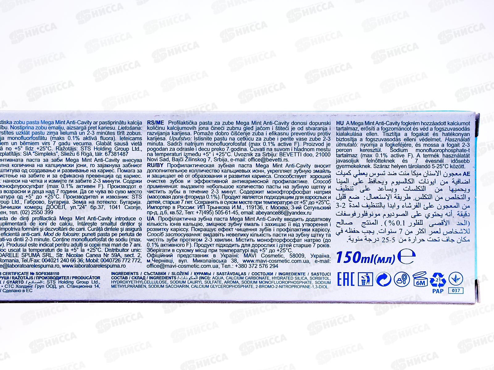 АКВАРЕЛЬ МЕГА МИНТ Anti-Cavity зубная паста против кариеса 210грамм*36